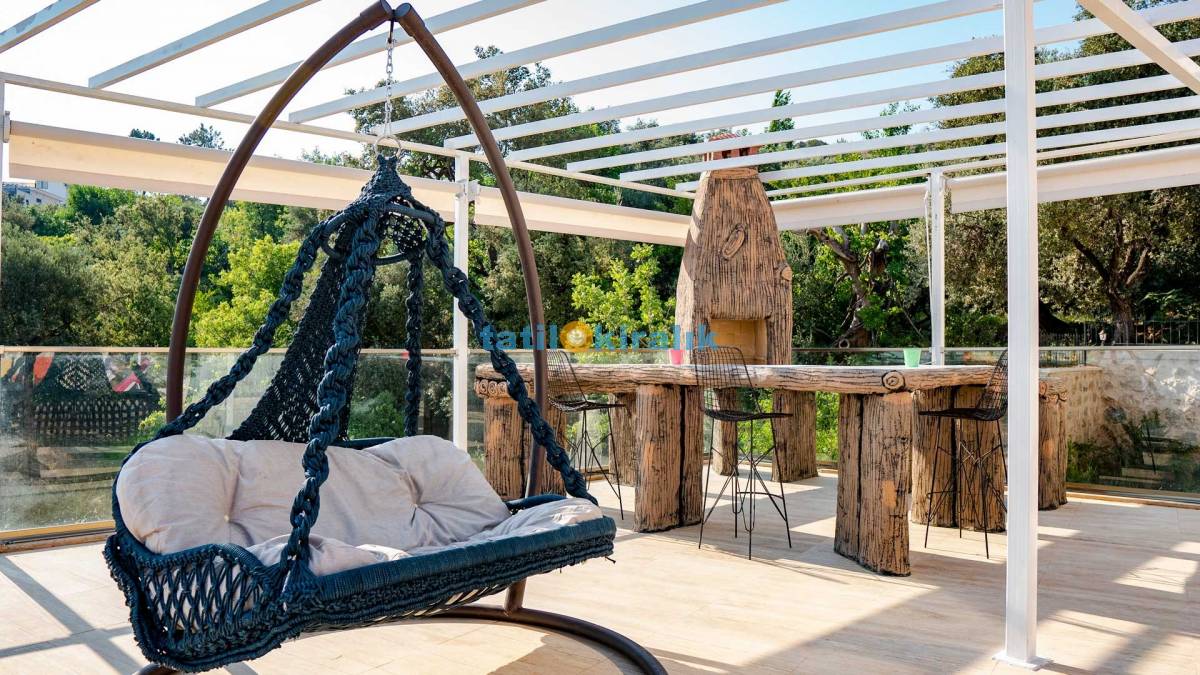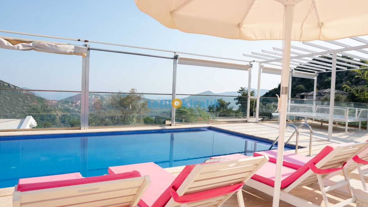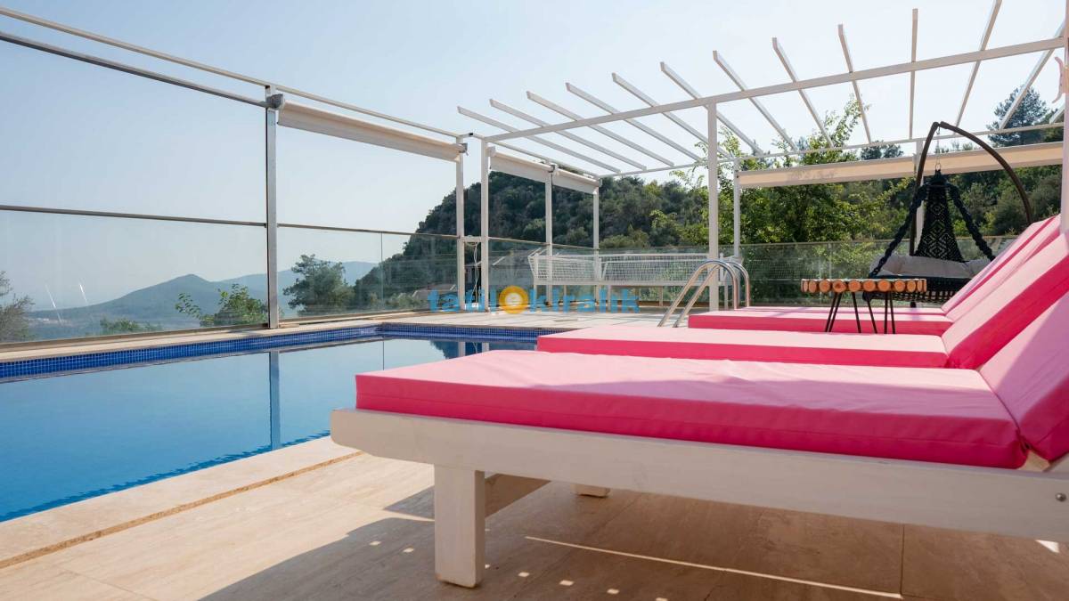 Havuz Terası Detayları :Şezlong, güneşten korunmak için şemsiye, köşk, hamak barbekü ve masa sandalye bulunmaktadır.