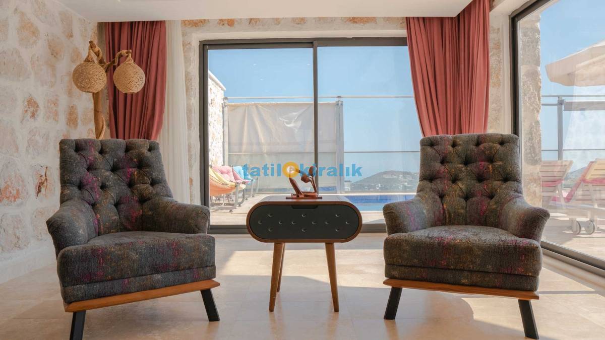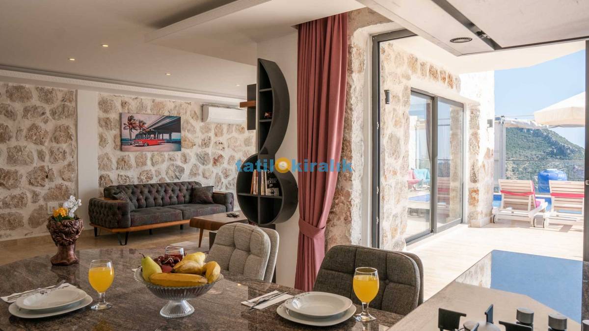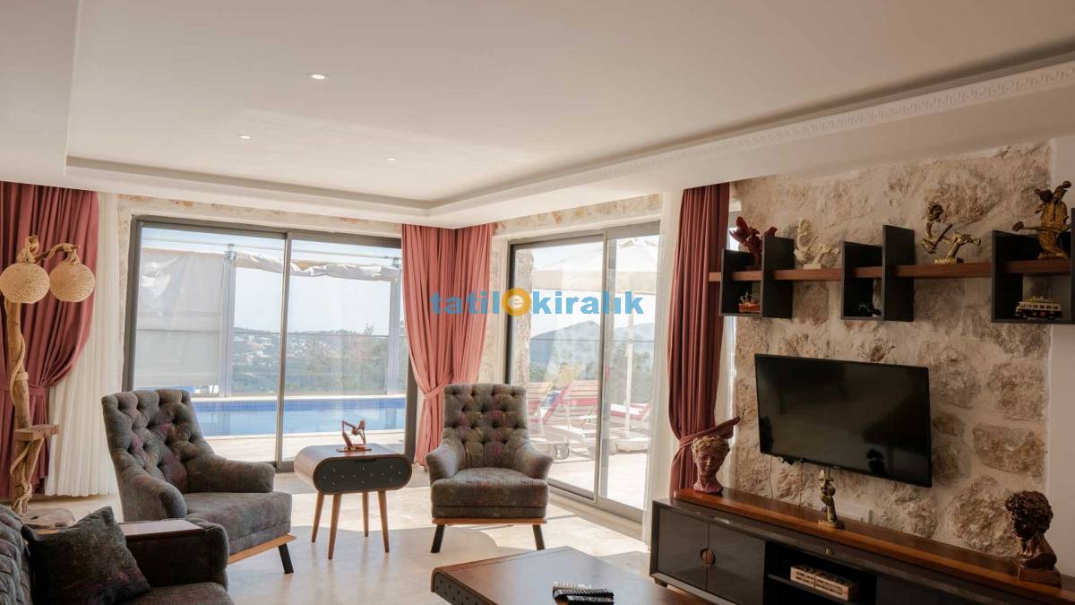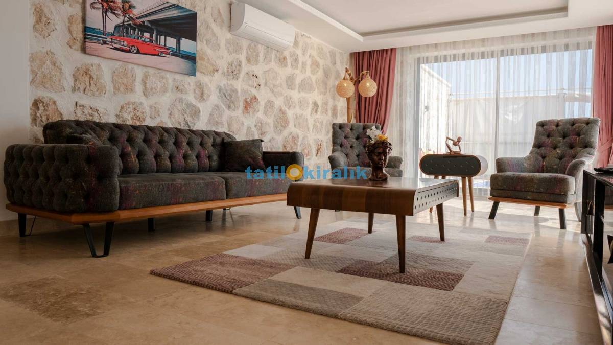 Salon Detayları : Klima, televizyon, internet, uydu alıcı, oturma grubu ve yemek masası bulunmaktadır. Salondan havuza açılan bir çıkışımız mevcuttur..