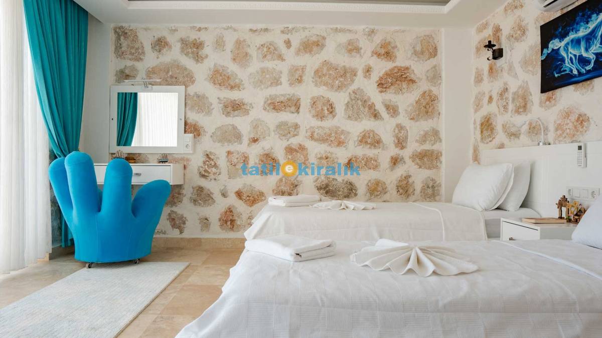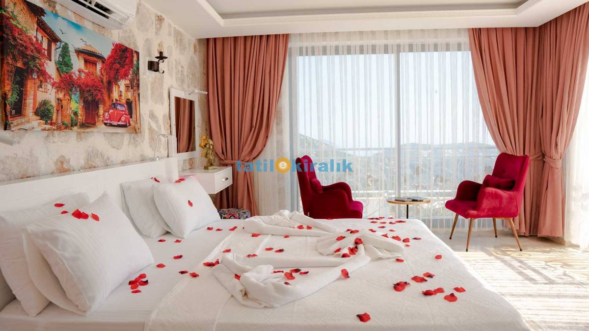 Detayları : Yatak Odası: 1 adet çift kişilik yatak, elbise dolabı, komodin, LCD TV, klima, wc ve banyo bulunmaktadır.