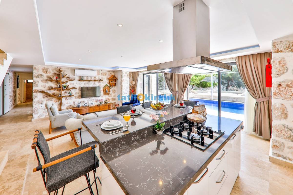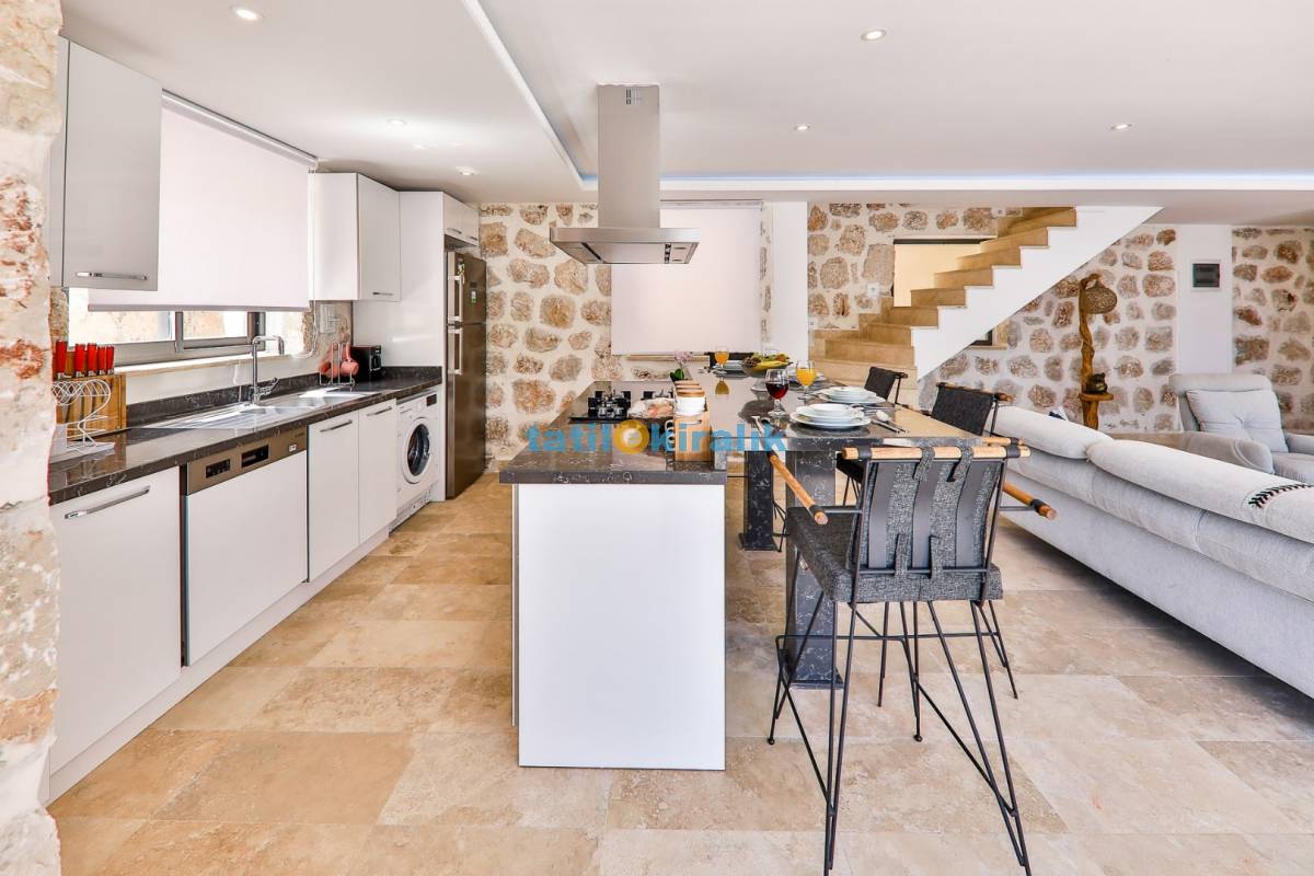 Detayları: Bulaşık makinesi, buzdolabı, elektrikli su ısıtıcı kettle, çamaşır makinesi, fırın, 4’lü ocak, 4 kişilik yemek takımı, mikrodalga, kaşık, bıçak, çatal takımı, tencere, bardaklar ve tava takımı bulunmaktadır. Mutfaktan bahçeye çıkışımız mevcuttur.