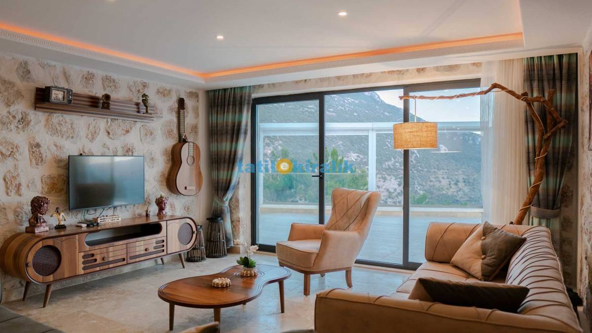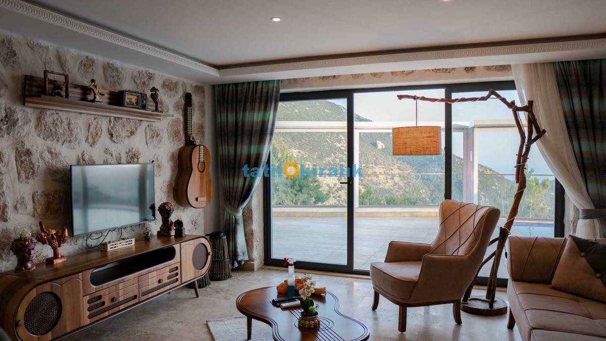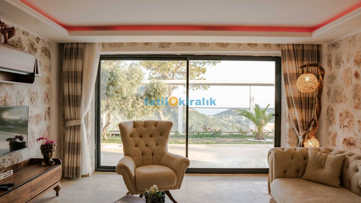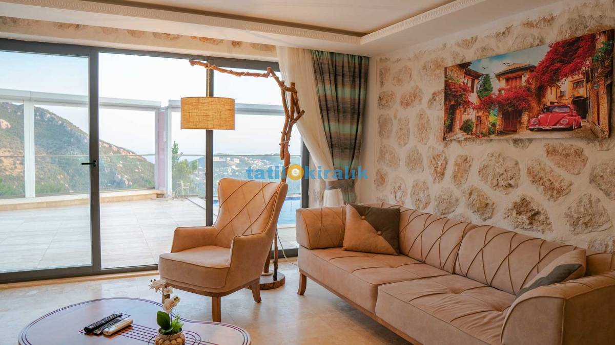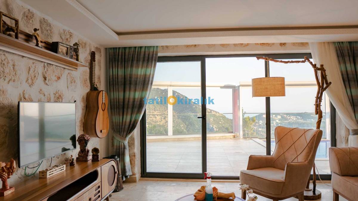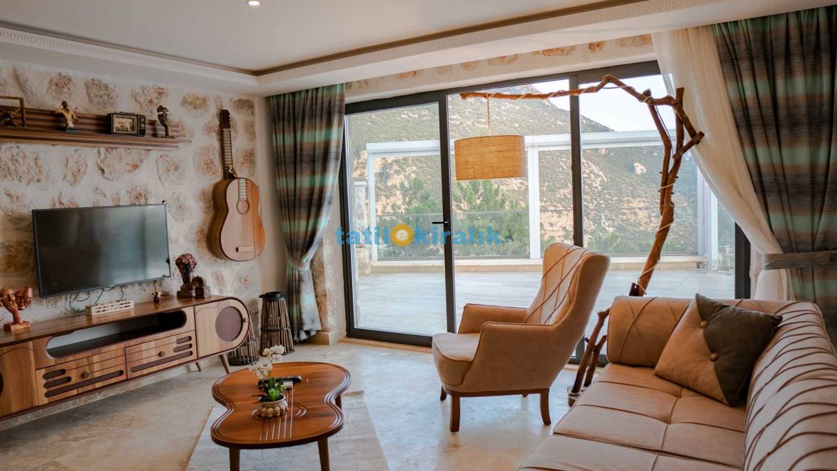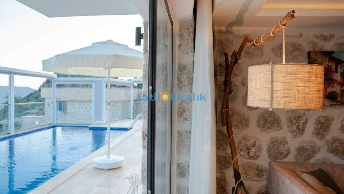 Salon Detayları : Salon geniş ve manzaralı bir konumdadır. Salon içerisinde oturma grubu, televizyon, uydu alıcı, internet, 4 kişilik yemek masası ve sandalyeler bulunmaktadır. Salondan havuza çıkış mümkündür.