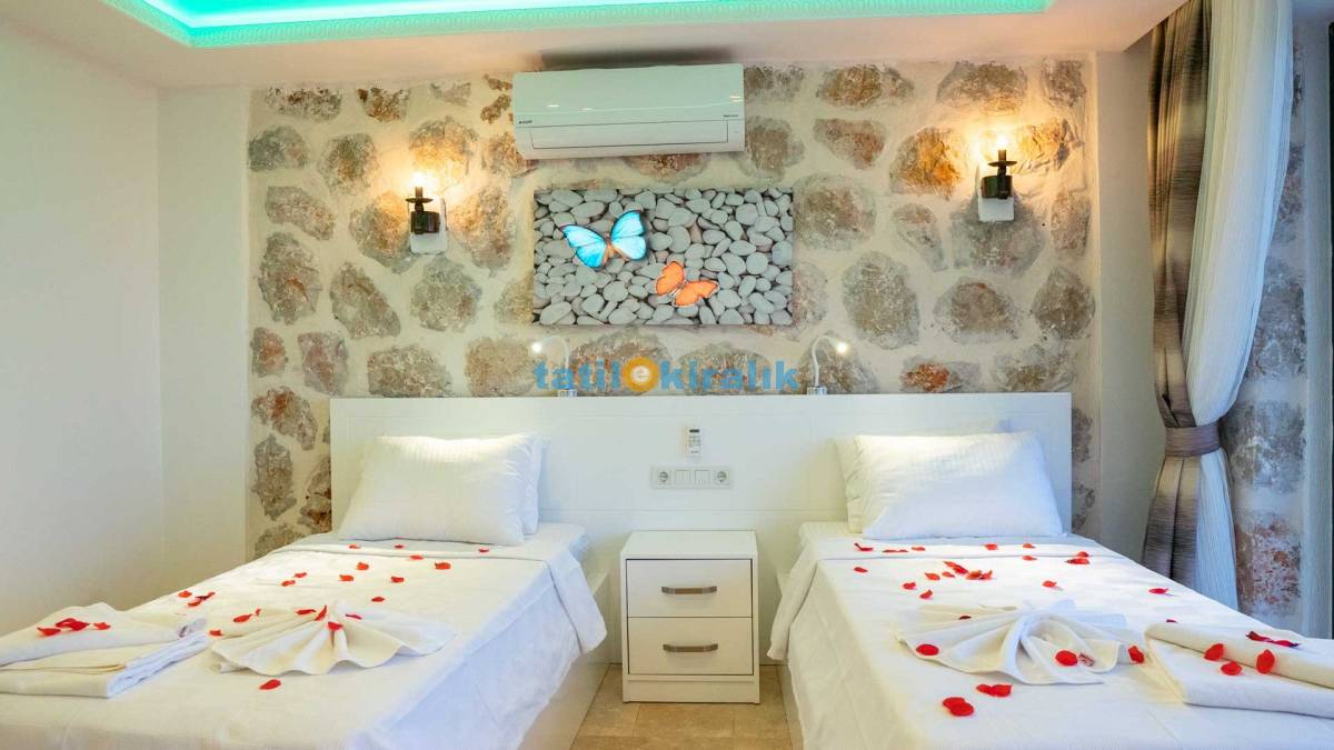 Detayları :2 adet tek kişilik yatak, televizyon, elbise dolabı, komodin, makyaj masası, banyo ve banyo bulunmaktadır.