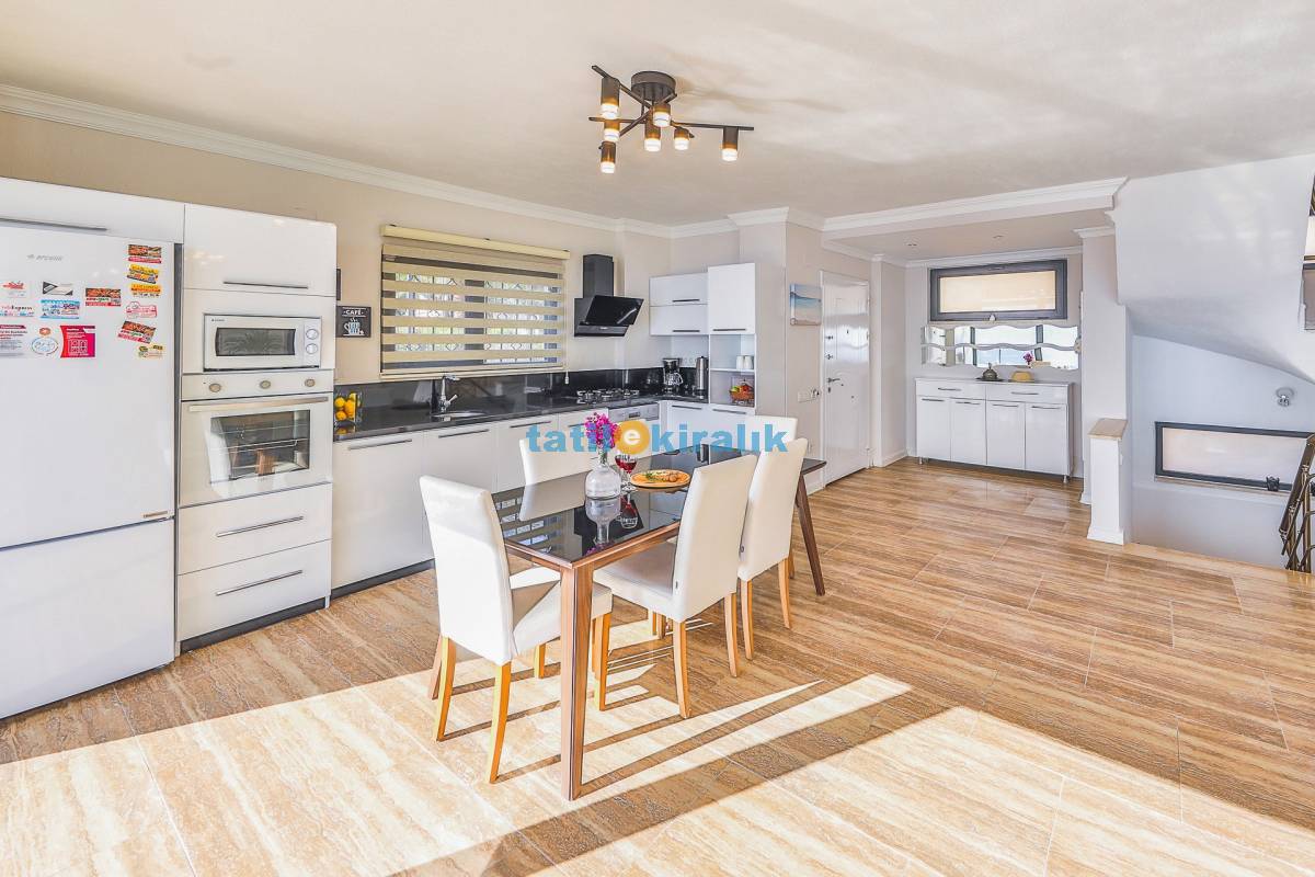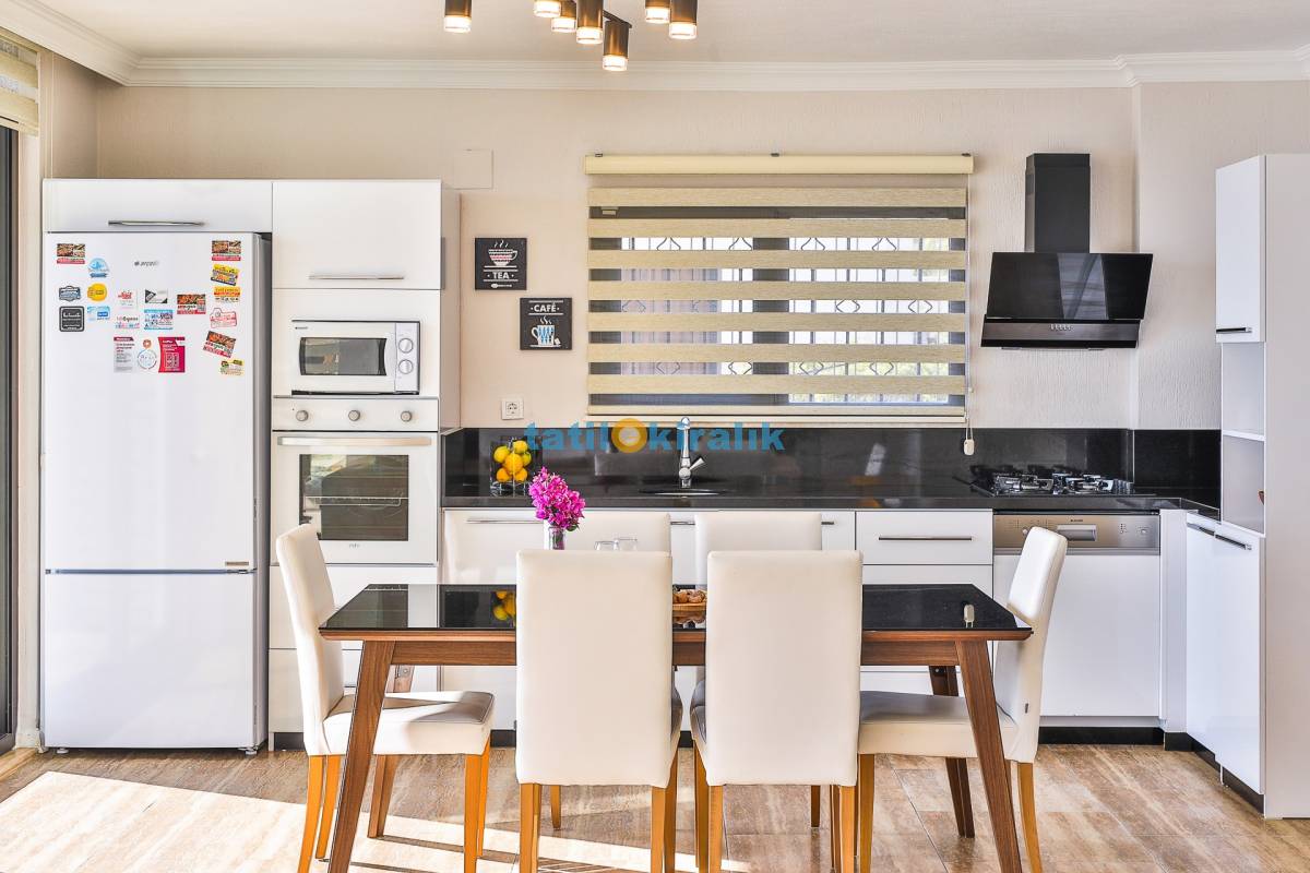 Mutfak Detayları: Buzdolabı, Bulaşık Makinesi, Çamaşır Makinesi, Fırın, 4’lü Ocak (ankastre), Mikrodalga Fırın, Elektrikli Su Isıtıcı, Tava & Tencere vb. Mutfak Ekipmanları, 10 Kişilik Yemek Takımı bulunmaktadır.