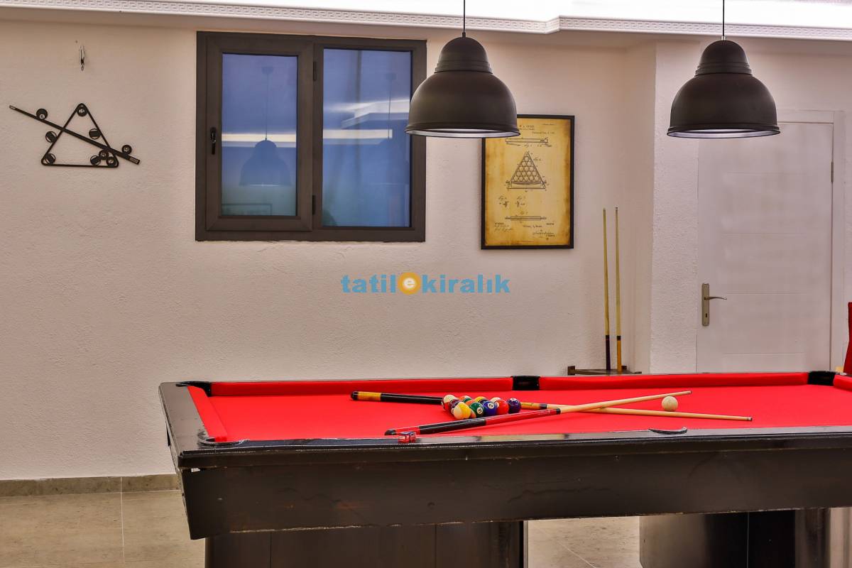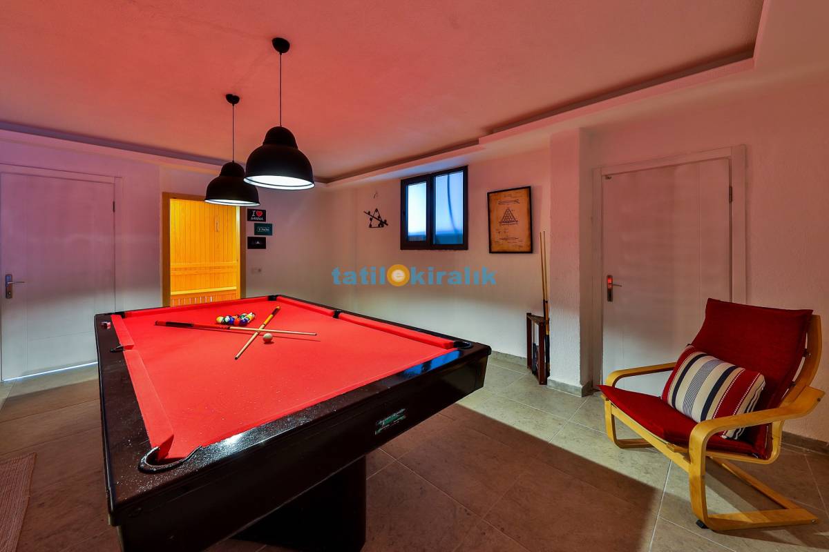 Salon Detayları: Oturma Grubu, Uydu TV (LCD), Kablosuz İnternet, sauna , langırt , bilardo , Klima, 10 Kişilik Yemek Masası bulunmaktadır.