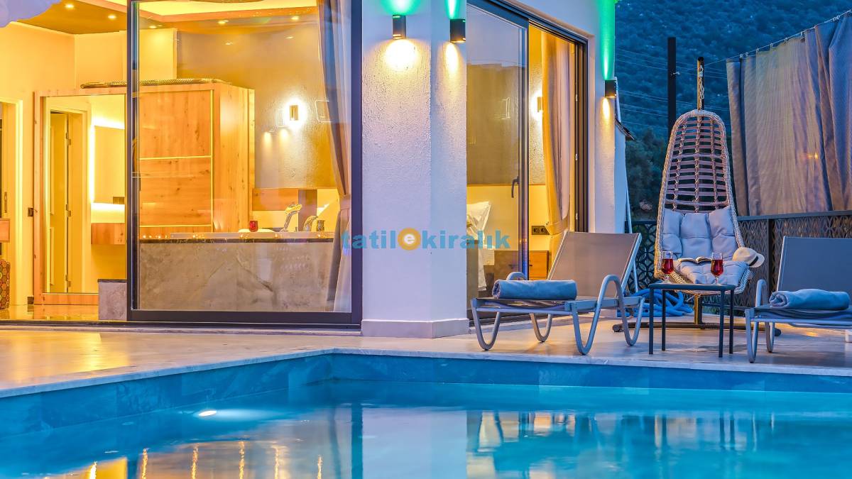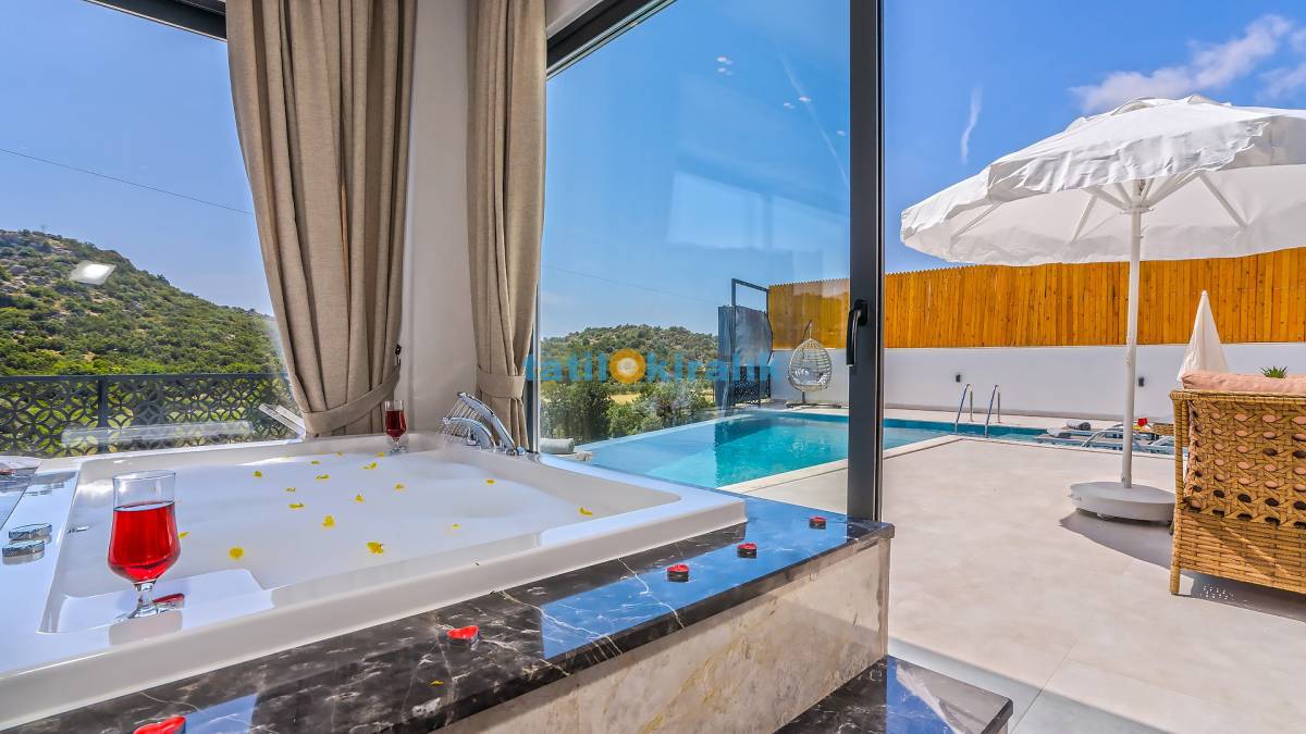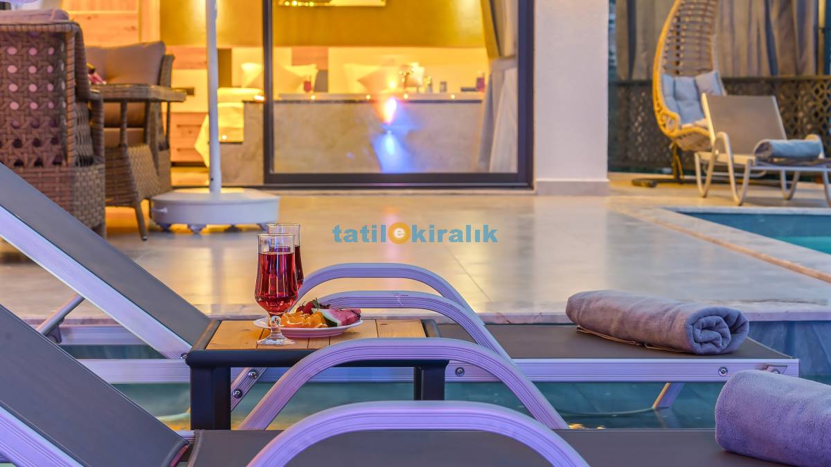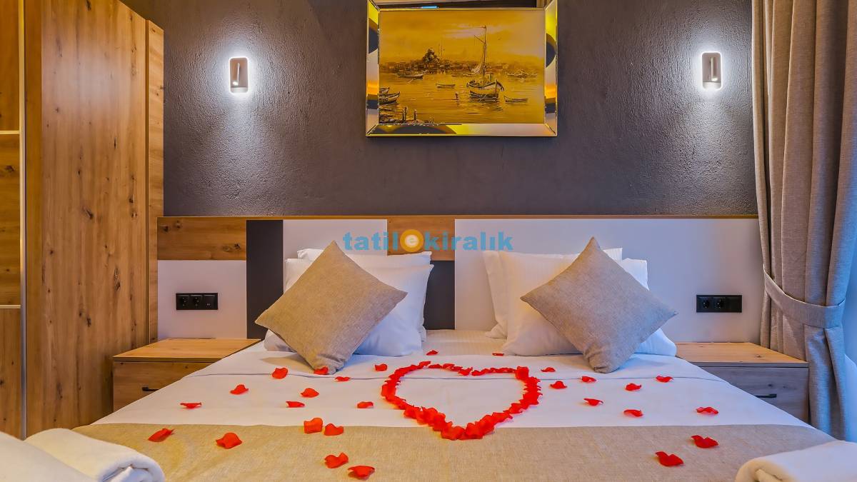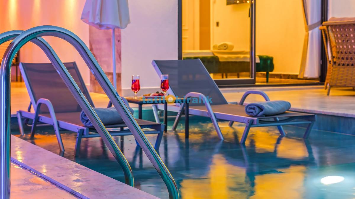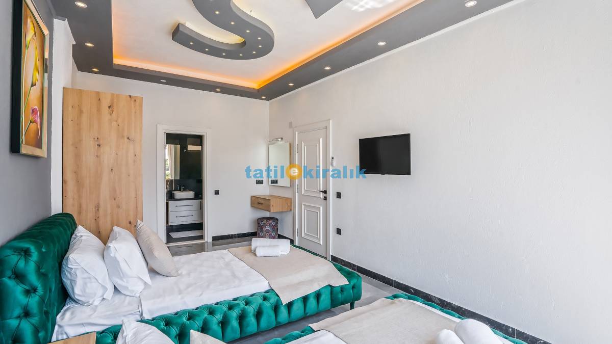 Detayları : Çift kişilik yatak, klima, elbise dolabı, makyaj masası, jakuzi, TV, komodin, ısıtmalı havuz, lavabo ve banyo bulunmaktadır.