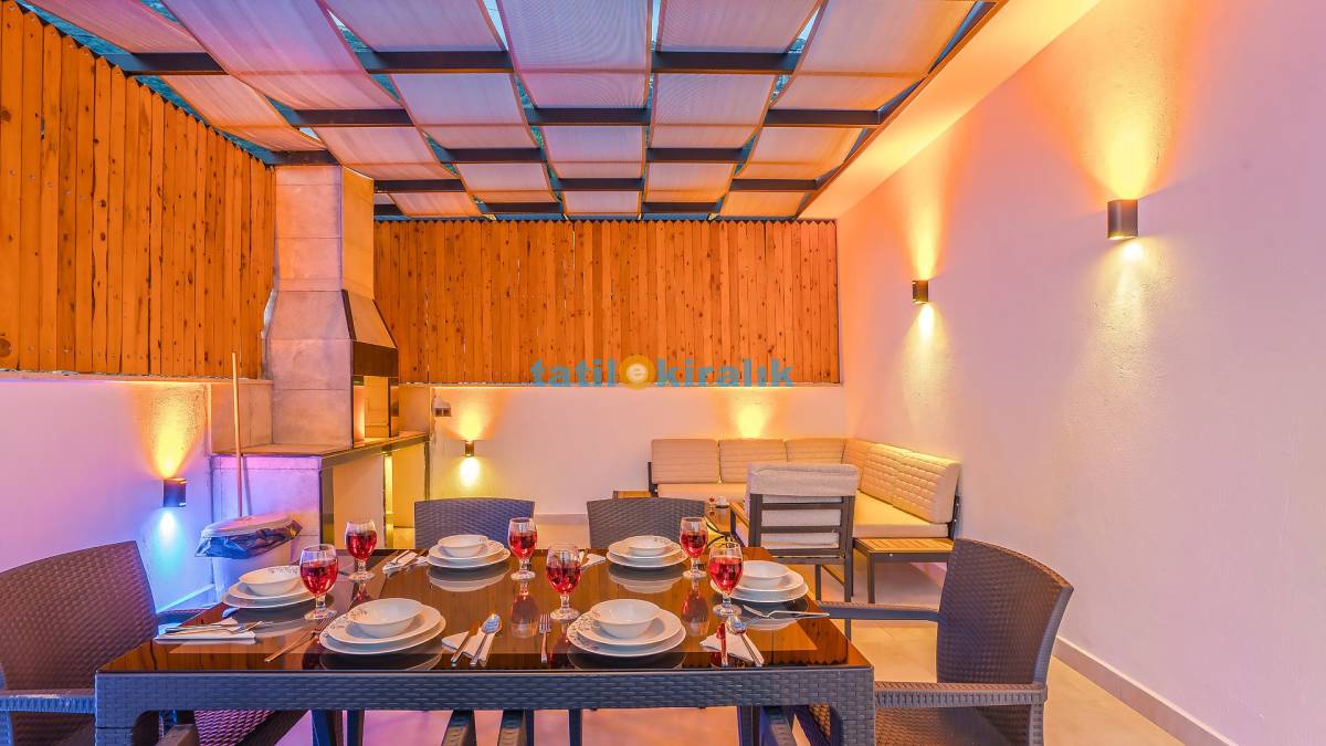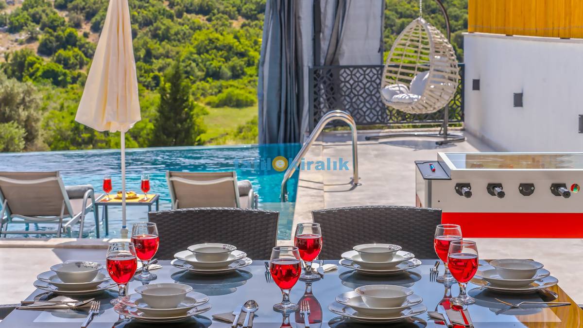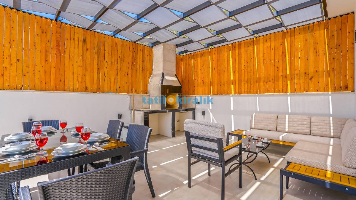 Havuz Terası Detayları : Şemsiye, şezlong, barbekü, yemek masası, masa tenisi, langırt ve salıncak bulunmaktadır.