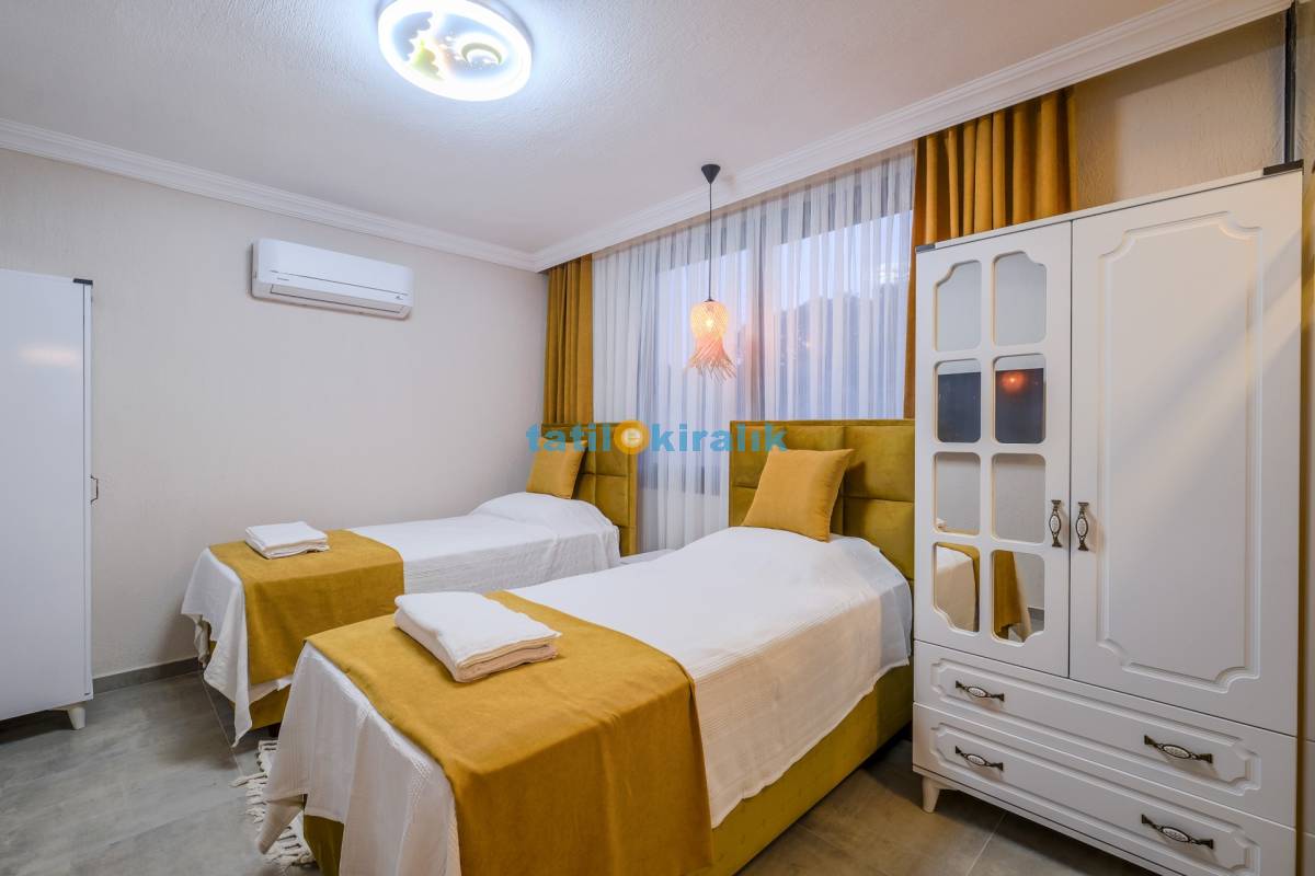 Detayları: 2 adet tek kişilik yatak, klima, komodin, elbise dolabı, makyaj masası, banyo ve lavabo bulunmaktadır.