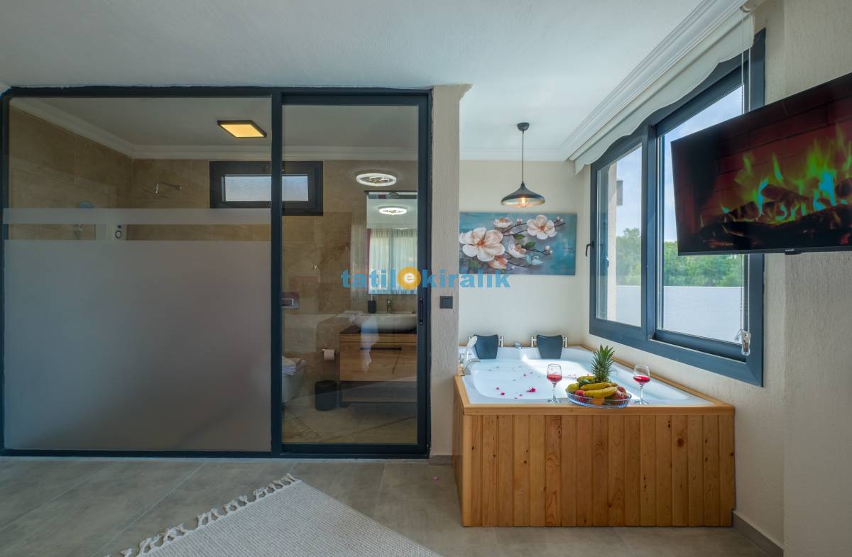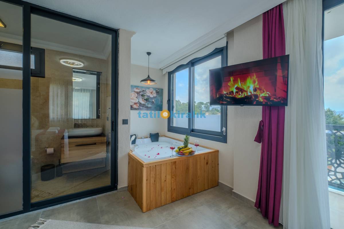 Detayları: Çift kişilik yatak, klima, komodin, jakuzi , elbise dolabı, makyaj masası, banyo ve lavabo bulunmaktadır.