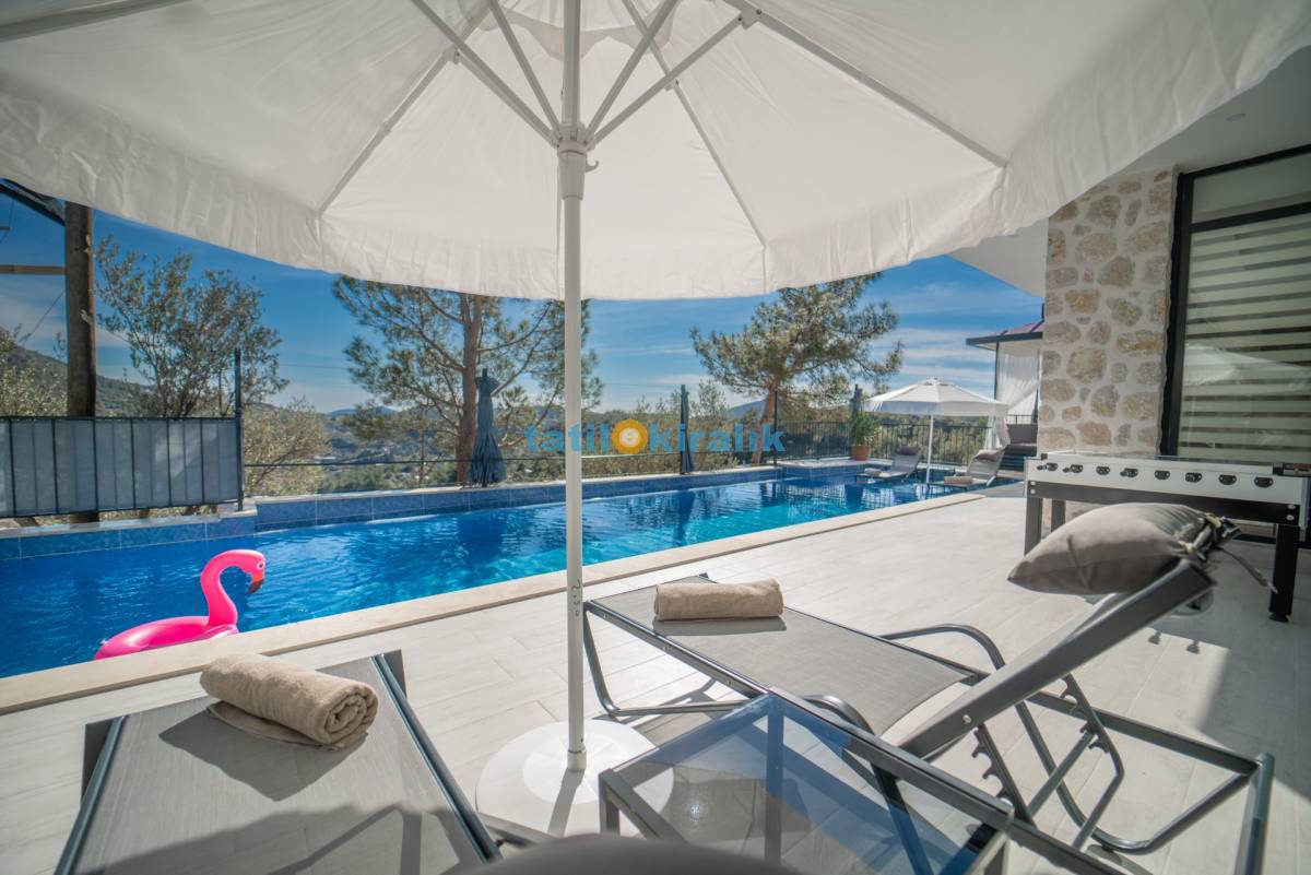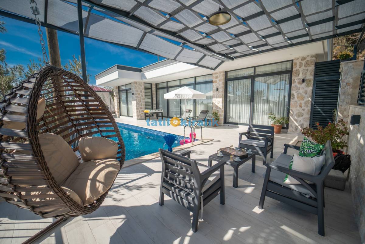 Havuz Terası Detayları : Şezlonglar, barbekü, yemek masası, salıncak, oturma grubu bulunmaktadır.