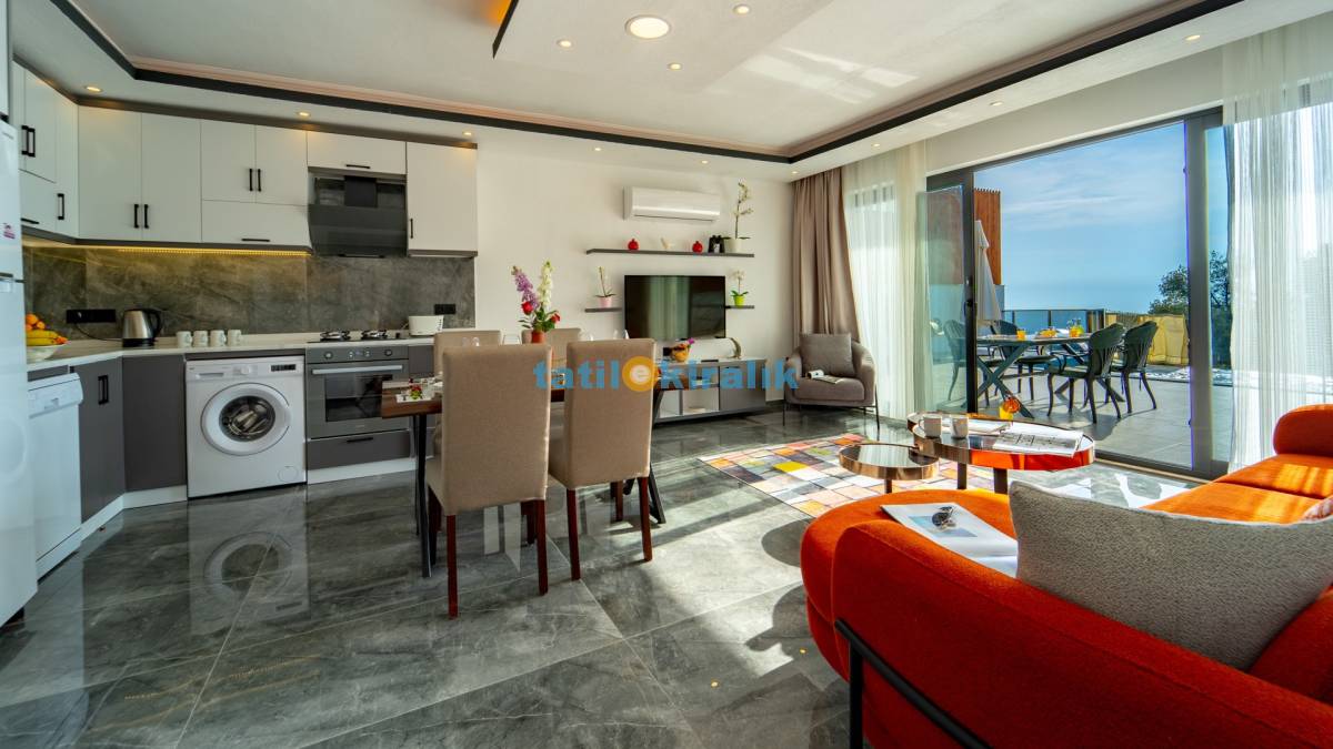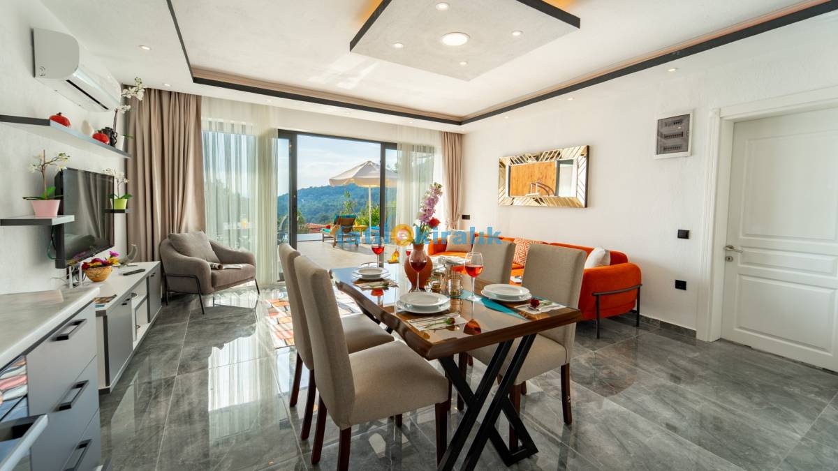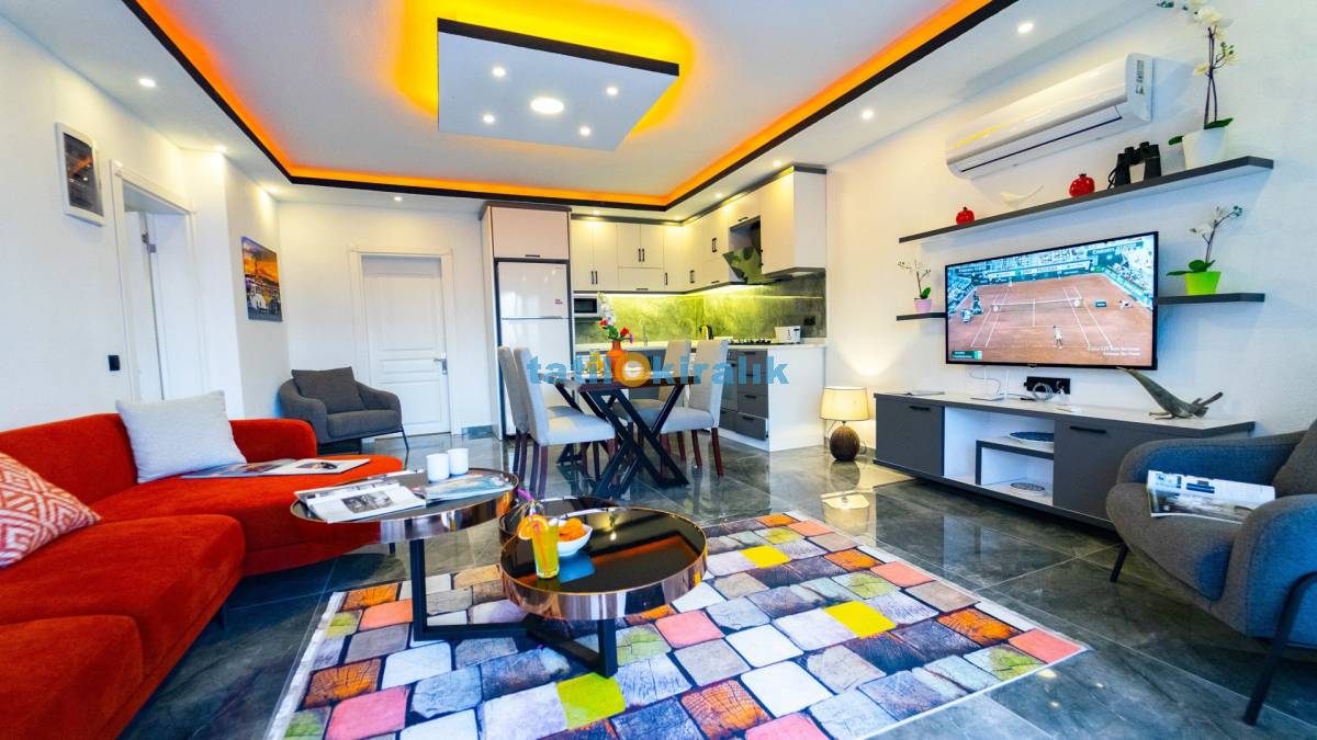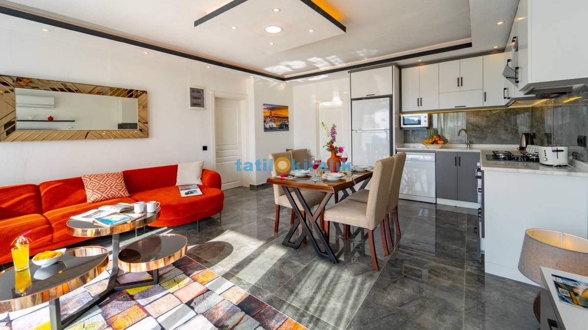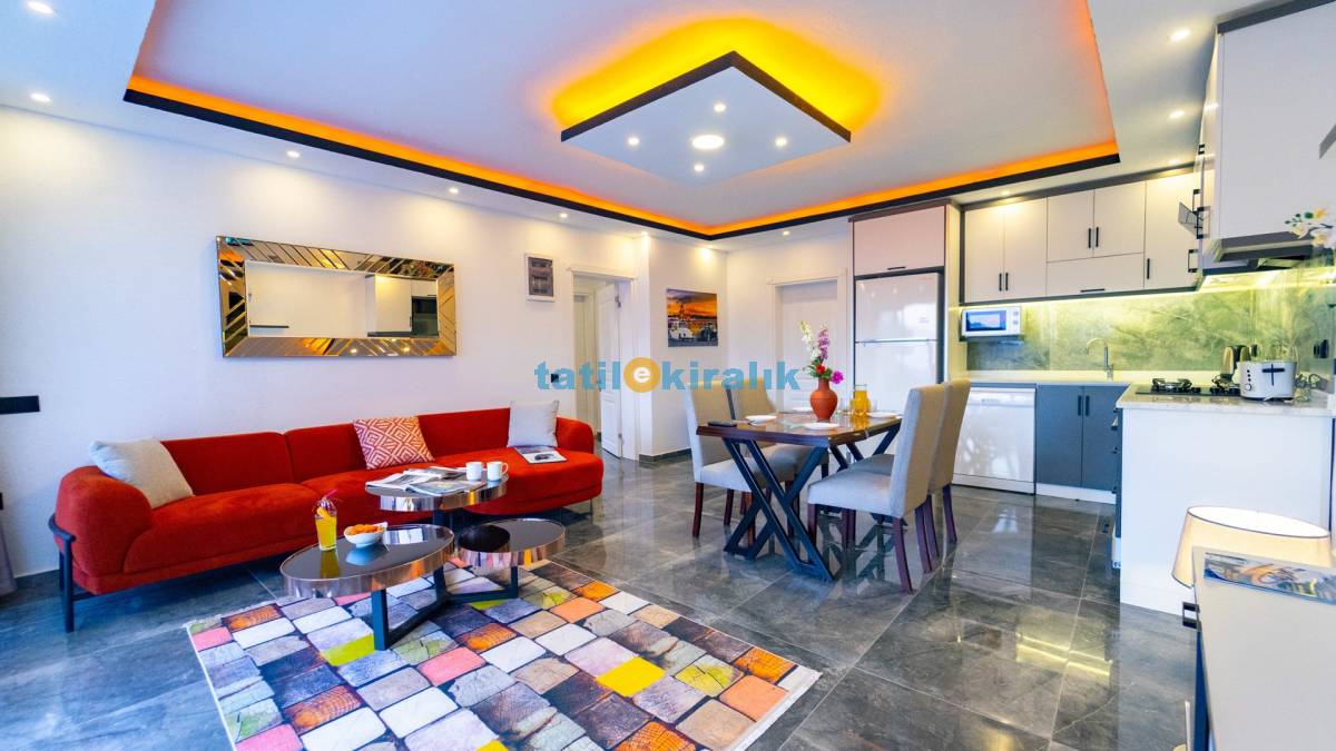 Salon Detayları : LCD TV, klima , modern oturma , grubu , Ada yemek masası ve sandalyeler , kablosuz modem Bulunmaktadır.
