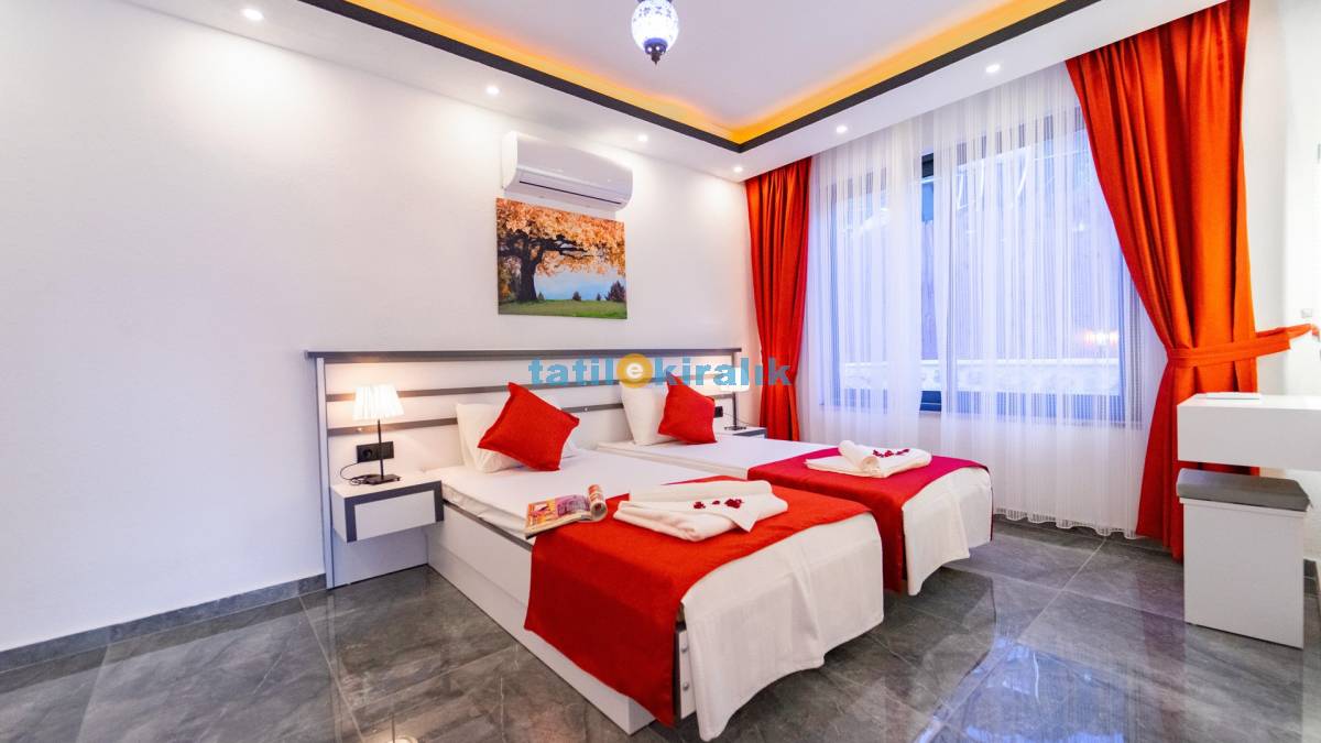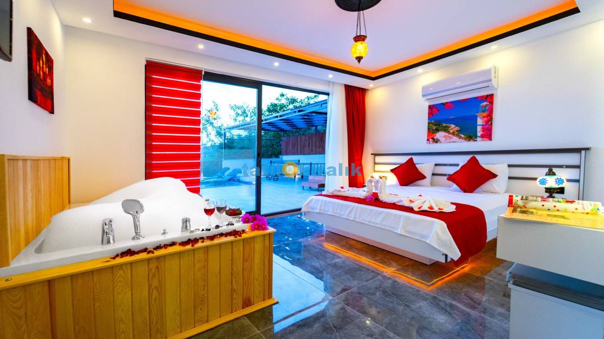 Detayları : Çift kişilik yatak , klima , jakuzi , komodin , elbise dolabı , makyaj masası , banyo ve lavabo Bulunmaktadır.