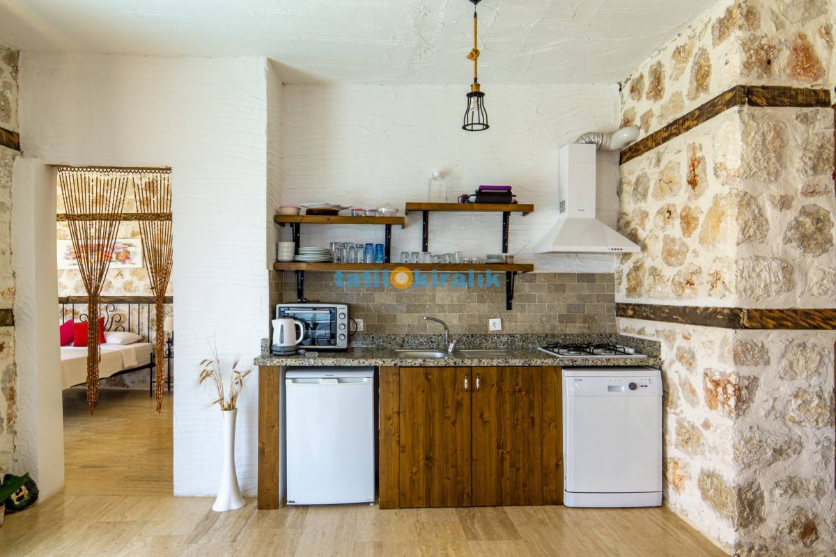 Mutfak Detayları : Buzdolabı , bulaşık makinesi , kahve makinası , çamaşır makinesi , 2 kişilik yemek takımı , tava-tencere, çatal-bıçak seti bulunmaktadır.