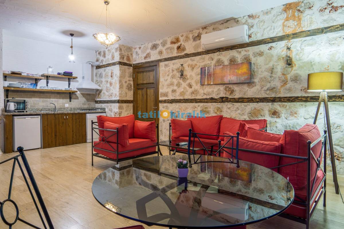 Salon Detayları : LCD TV, klima , modern oturma , grubu , yemek masası ve sandalyeler , kablosuz modem banyo ve lavabo bulunmaktadır.