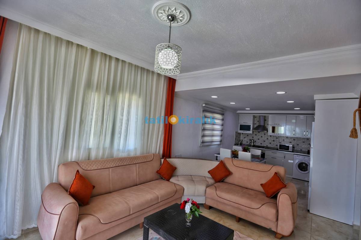 Salon Detayları: LCD TV, modern oturma grubu, klima, sehpa ve kablosuz modem bulunmaktadır.