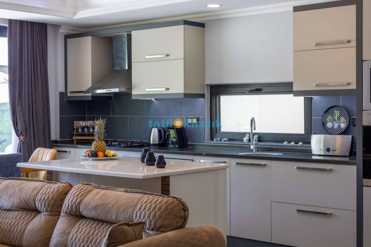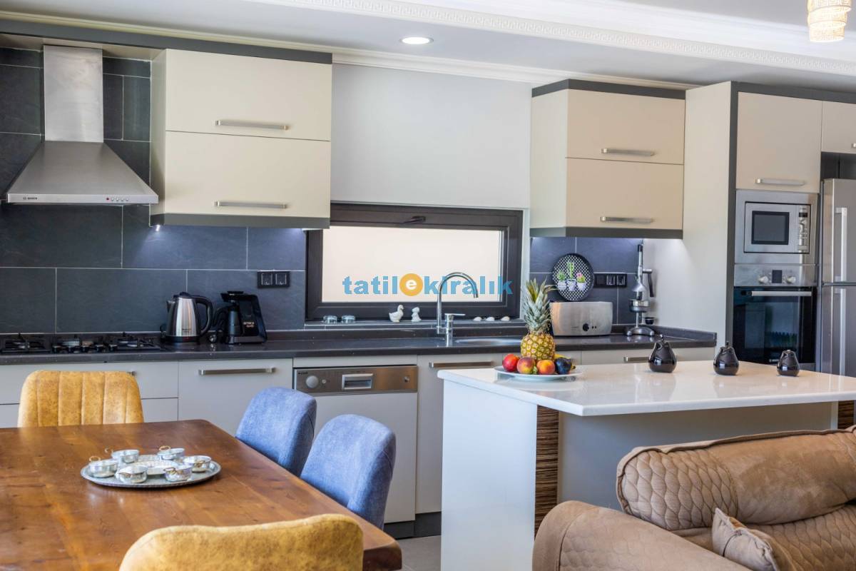 Mutfak Detayları: Buzdolabı, bulaşık makinesi, fırın, çamaşır makinesi, yemek takımı, tava-tencere, çatal-bıçak seti bulunmaktadır.