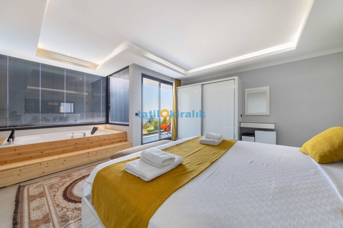 Detayları : Çift kişilik yatak, jakuzi, klima, komidin, elbise dolabı, makyaj masası, banyo ve lavabo bulunmaktadır.