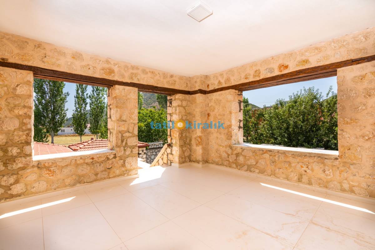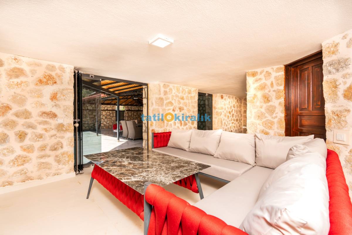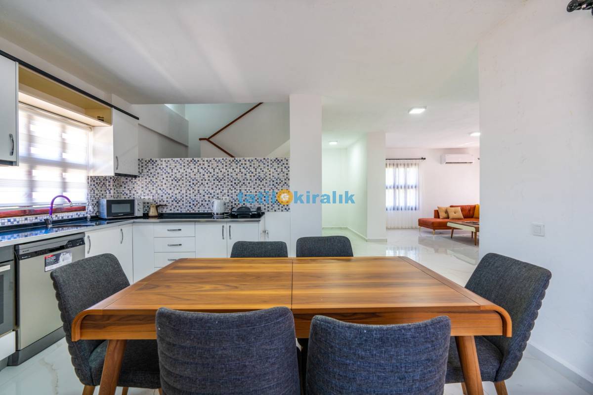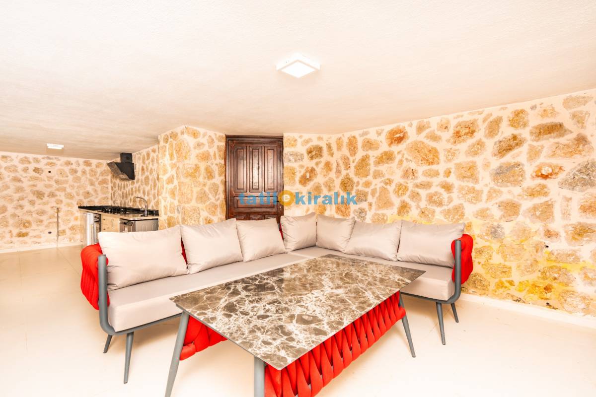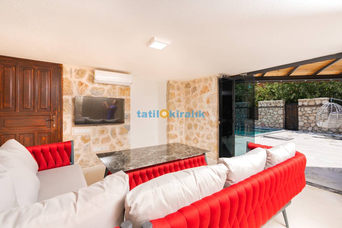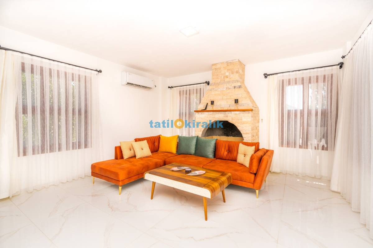 Salon Detayları: Oturma grubu, Uydu TV (LCD), Klima, 6 kişilik yemek masası, WC & Lavabo ve Havuz terasına çıkış bulunmaktadır.
