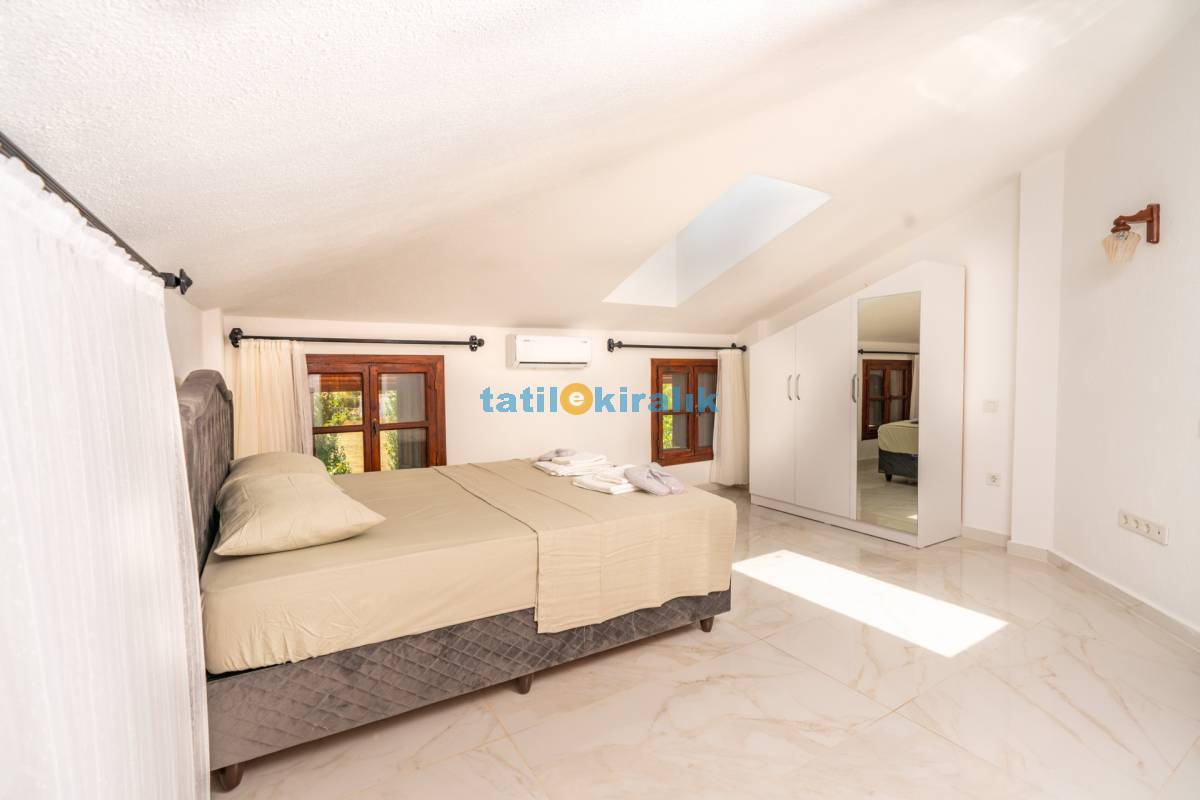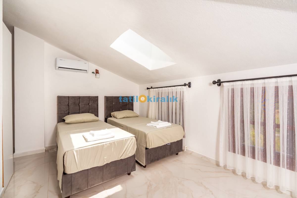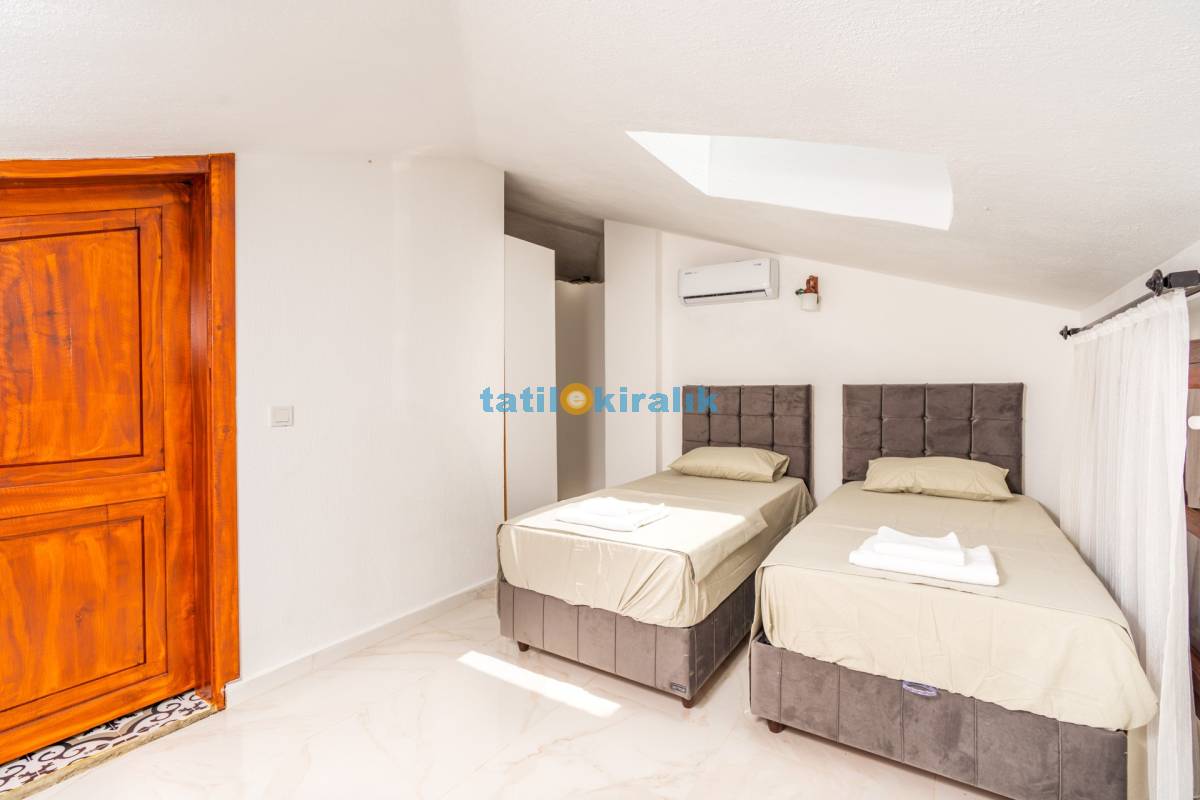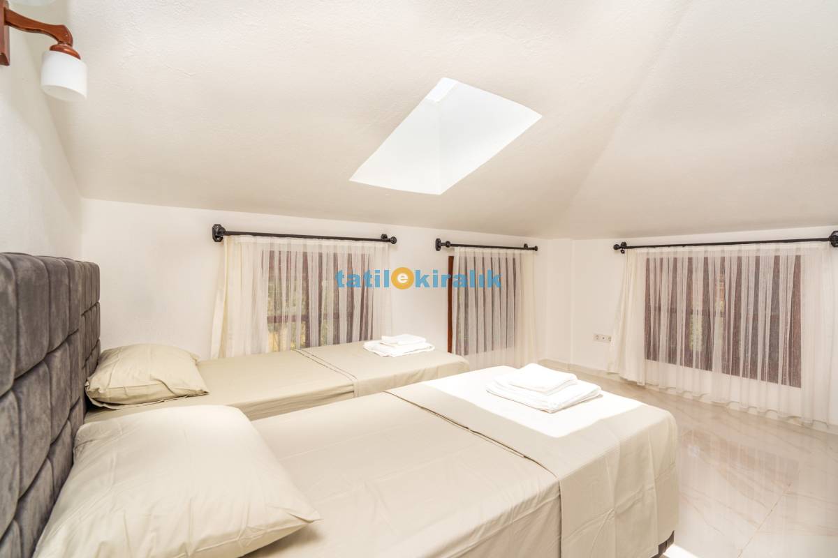 Detayları: 2 Adet tek kişilik yatak, Komodin, Makyaj masası, Klima, Elbise dolabı, Banyo ve Havuz terasına çıkış bulunmaktadır.