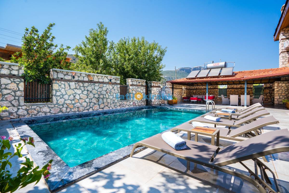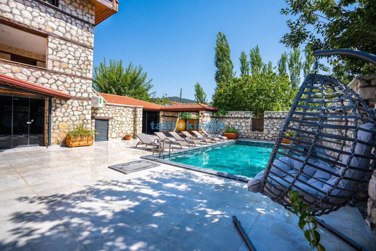 Havuz Terası Detayları: 6 Kişilik masa ve sandalye, Oturma grubu, 6 adet şezlong, Salıncak, Güneş şemsiyesi, Bulunmaktadır.