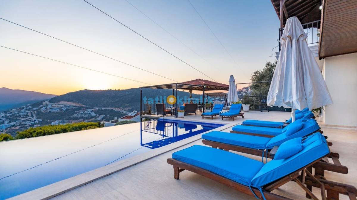 Havuz Terası Detayları : Şezlonglar, şemsiye, yemek masası, Oturma grubu ve barbekü bulunmaktadır.