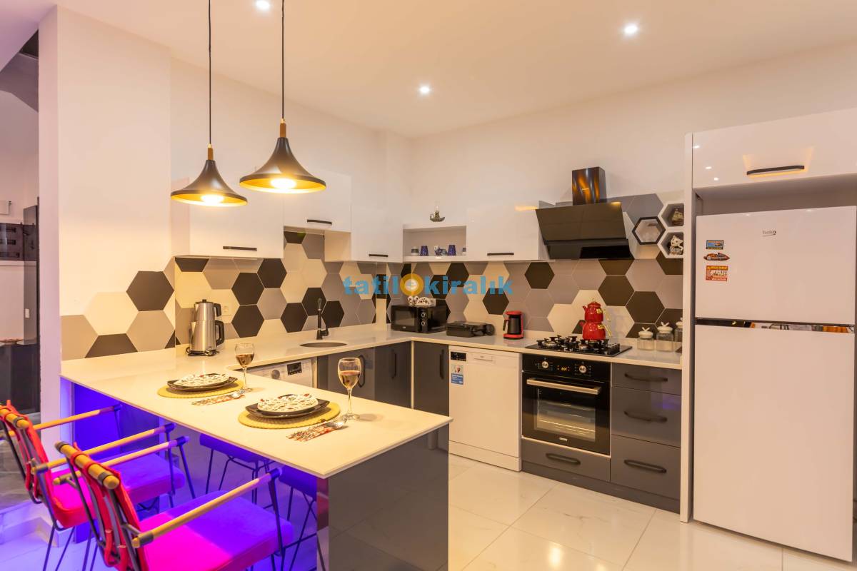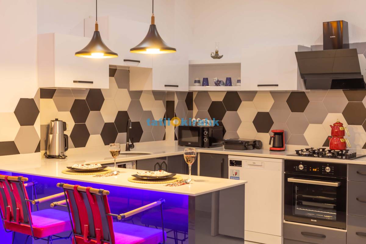 Mutfak Detayları : Buzdolabı , bulaşık makinesi , çamaşır makinesi , 2 kişilik yemek takımı , tava-tencere, çatal-bıçak seti bulunmaktadır.