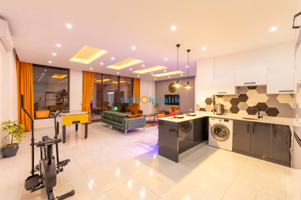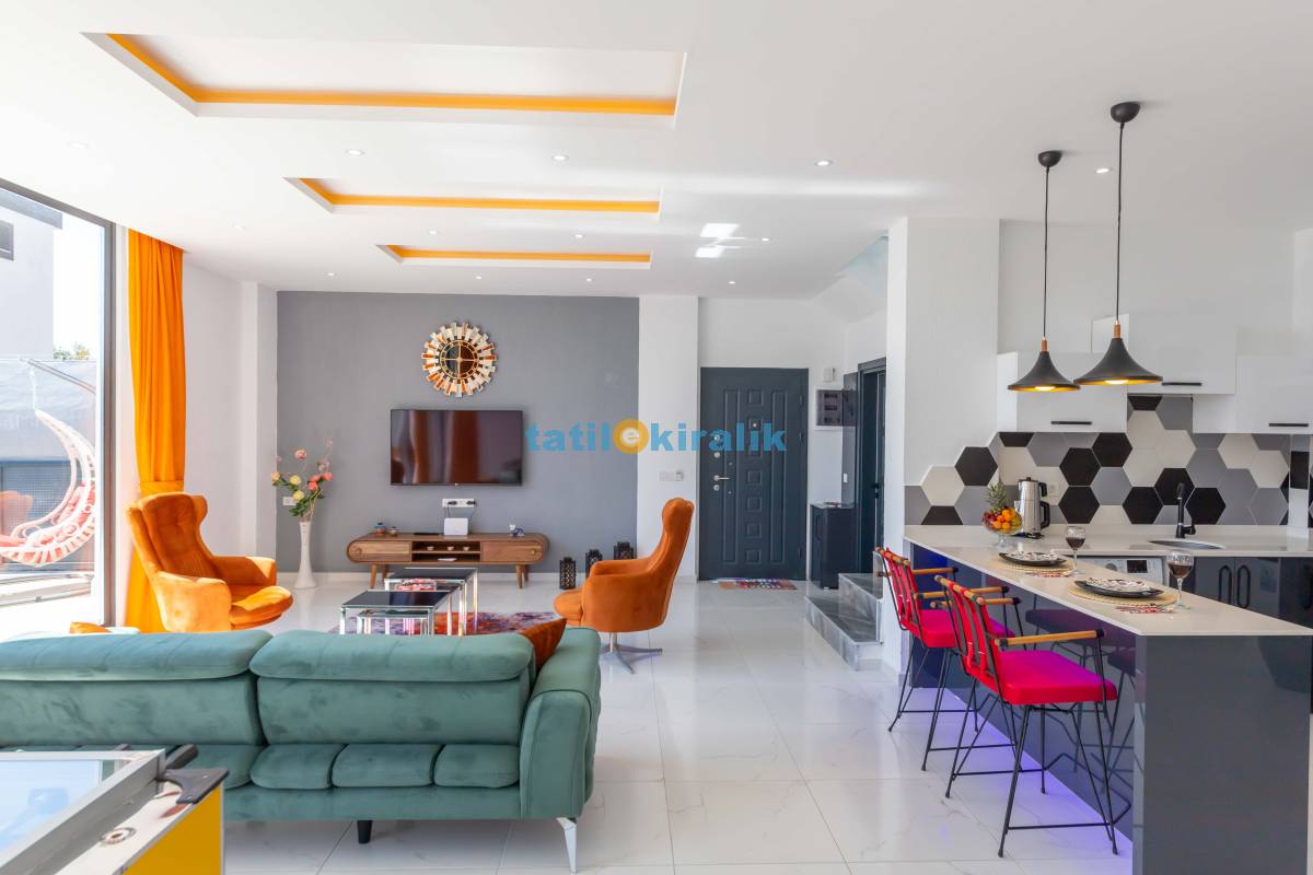 Salon Detayları : LCD TV, klima , modern oturma , grubu , yemek masası ve sandalyeler ,kablosuz modem bulunmaktadır.