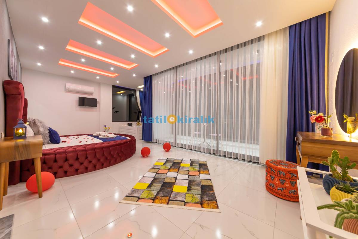 Yatak Odası Detayları : Çift kişilik yatak , klima , jakuzi , komodin , makyaj masası , elbise dolabı , banyo ve lavabo bulunmaktadır.