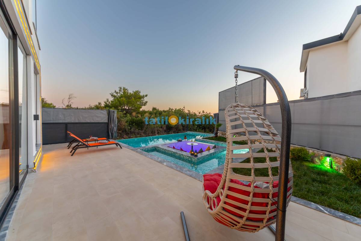 Havuz Terası Detayları : Şezlong , güneşlenme şemsiyesi ,salıncak , barbekü , yemek masası ve sandalyeleri bulunmaktadır