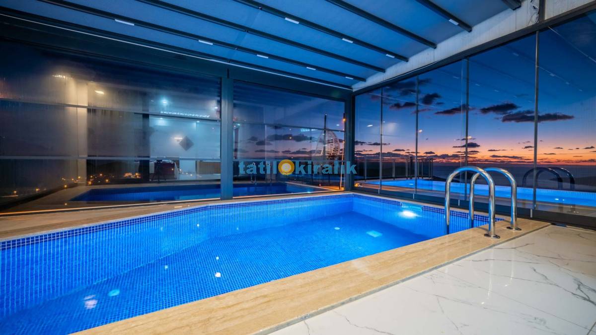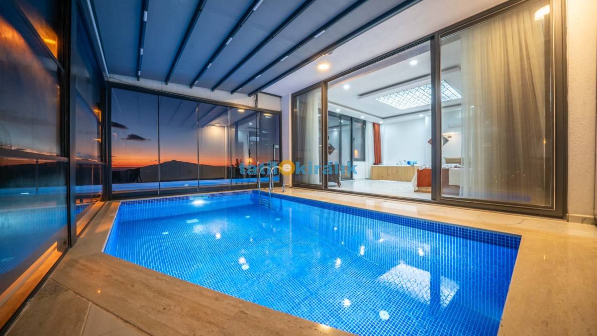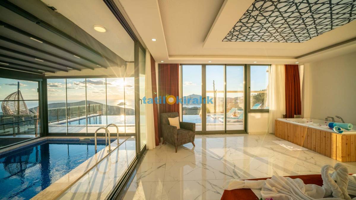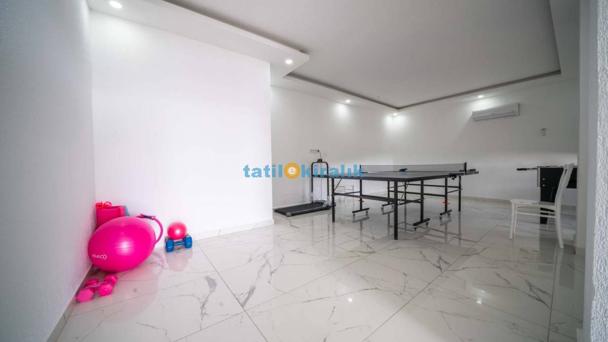 NOT: Villamızda yer alan spor odası alt katta yer almaktadır. Havuz terasındaki merdivenden aşağı inerek giriş yapılmaktadır. Yine villamızın alt katında Villa Spring-2 yer almaktadır. Villaların havuzları, girişleri birbirinden bağımsızdır. Spor odasını sadece Villa Spring-1 misafirleri kullanabilir. İç havuzun yan ve üst camları istenildiği takdirde açılıp kapanabilir.