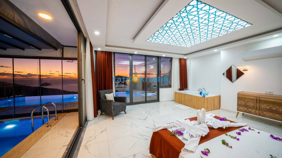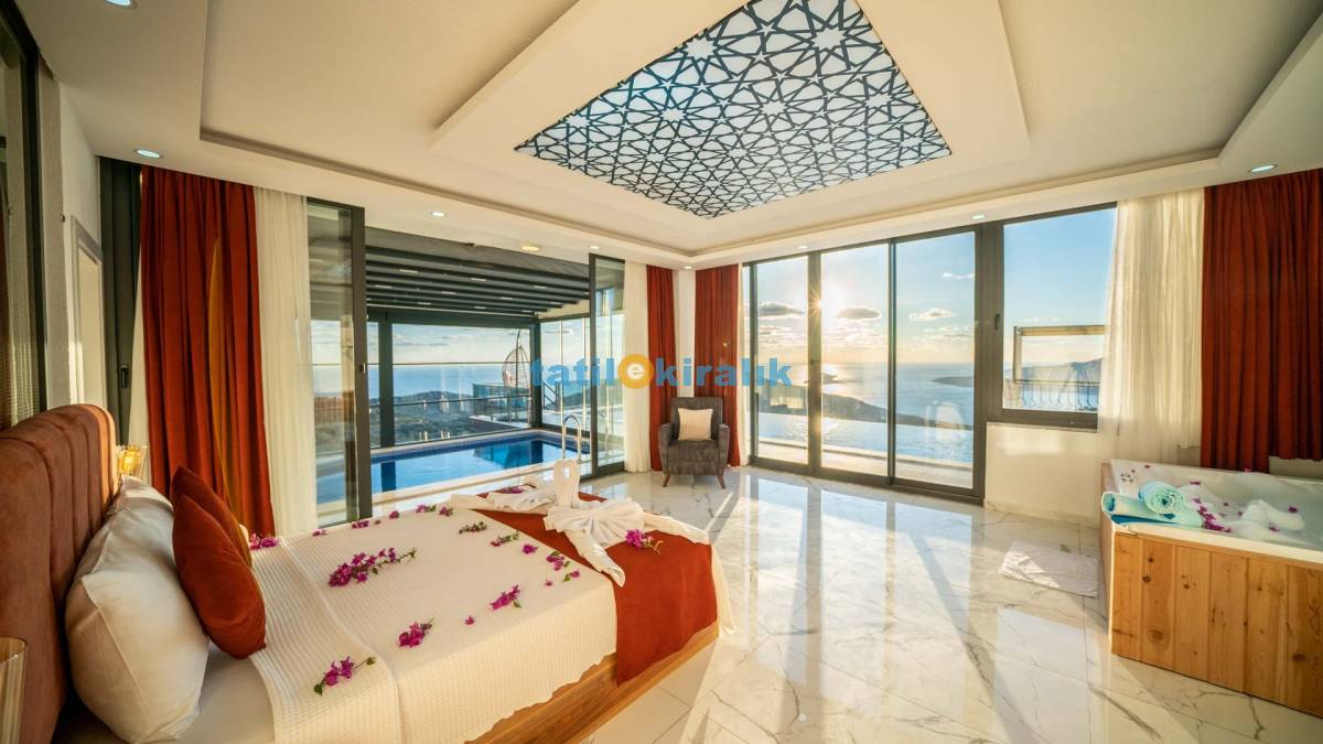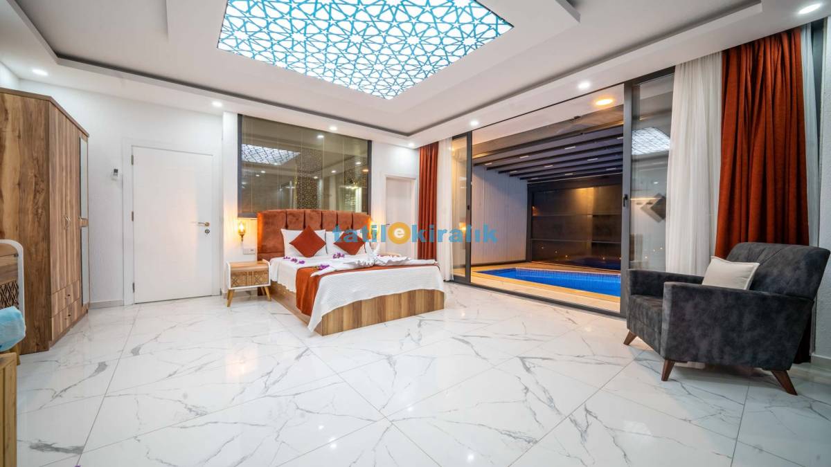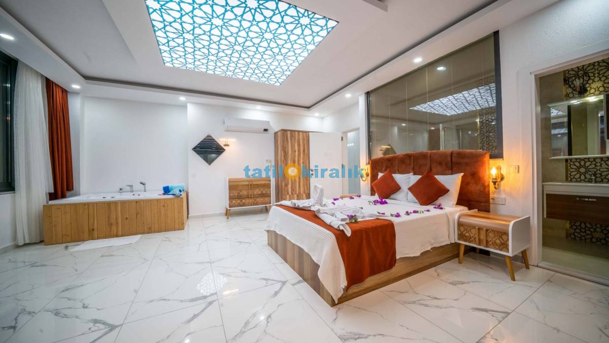 Detayları : Bir adet çift kişilik yatak ,klima, jakuzi, komodin, makyaj masası, ısıtmalı havuz ,elbise dolabı ve ebeveyn  banyosu bulunmaktadır.