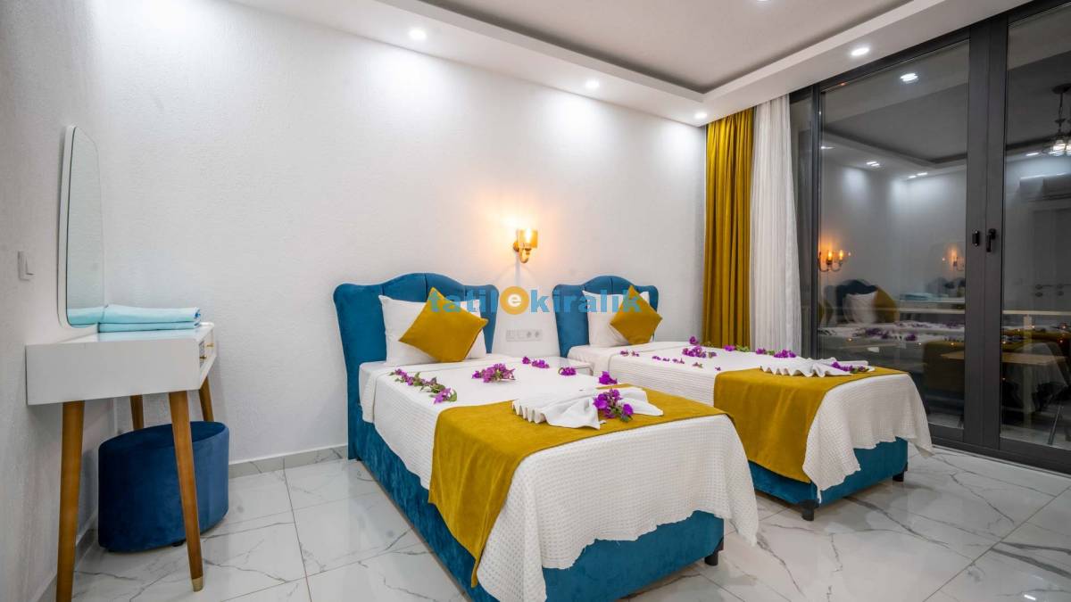 Detayları : İki  adet tek kişilik yatak , klima, komodin, makyaj masası ve elbise dolabı ve banyo bulunmaktadır.