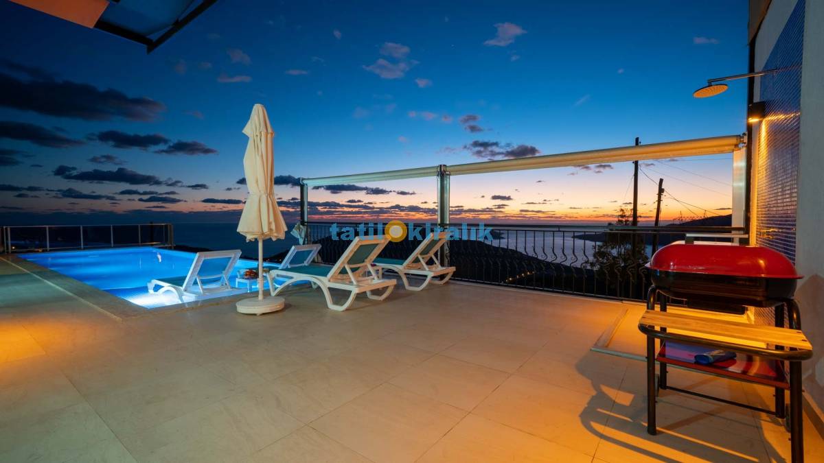 Havuz  Terası Detayları : Şezlonglar, barbekü, yemek masası, salıncak, oturma grubu, langırt  bulunmaktadır.