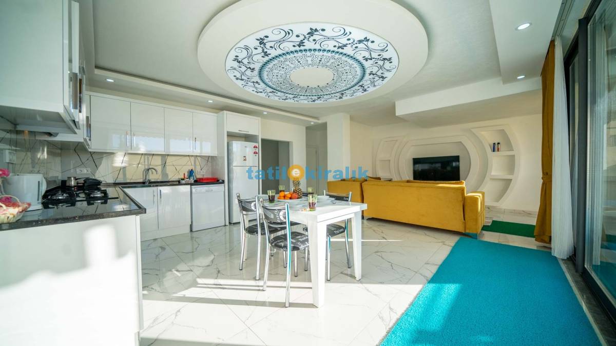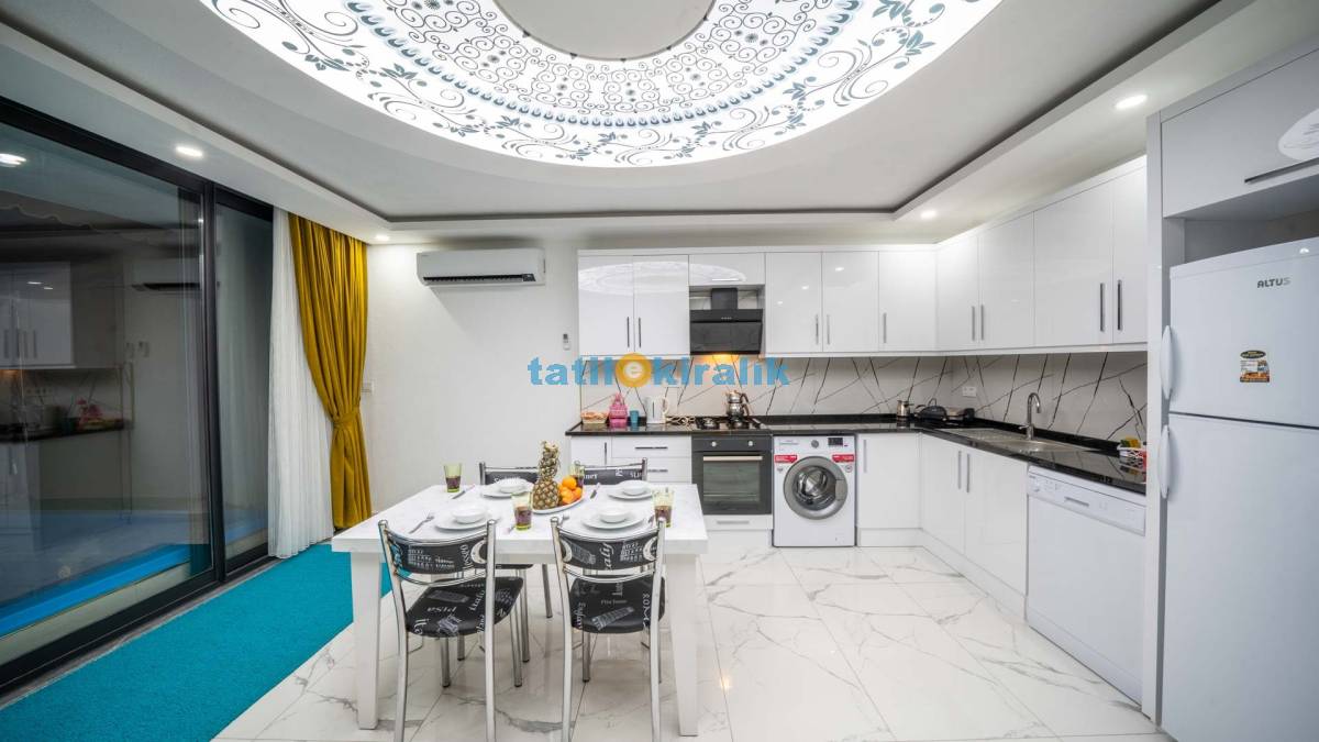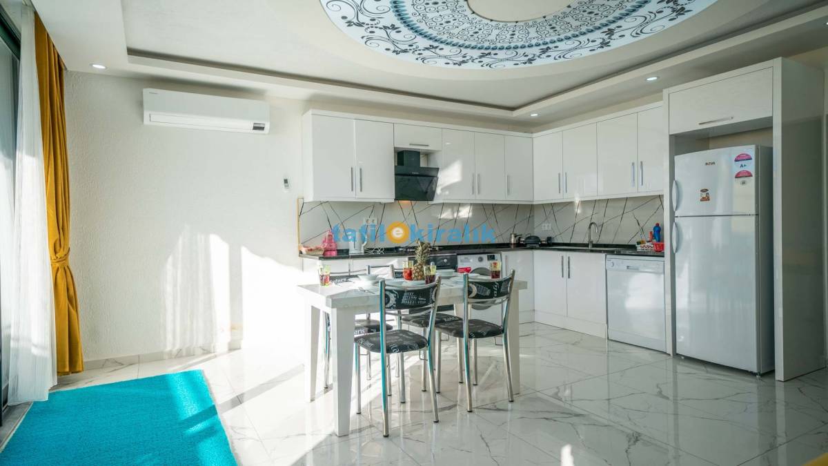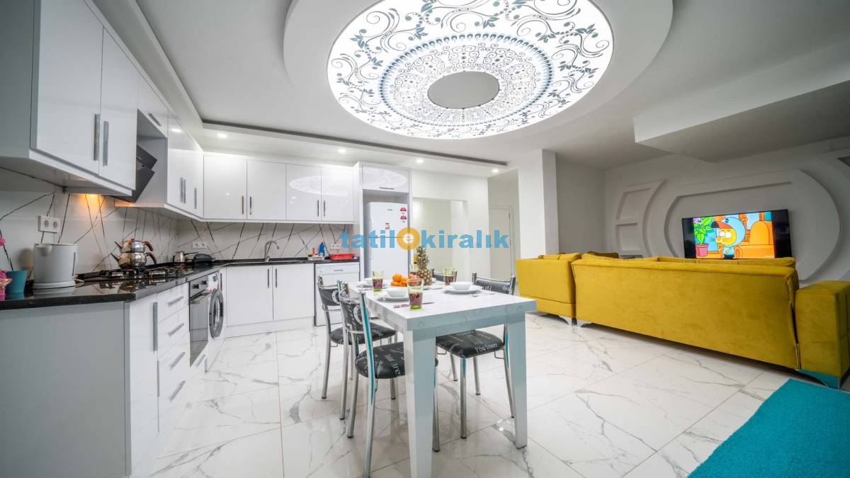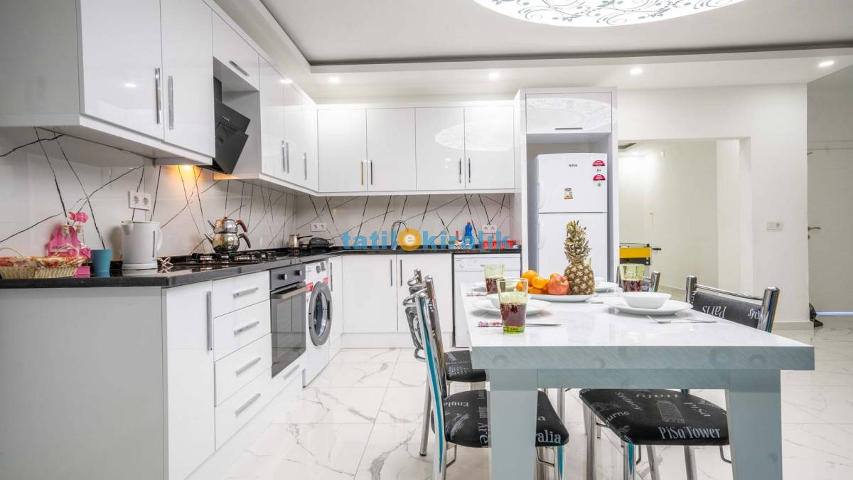 Mutfak Detayları: Buzdolabı, bulaşık makinesi, fırın, mikrodalga, tost makinesi çamaşır makinesi, Kahve Makinası, Su Isıtıcısı (Kettle) yemek takımı, tava-tencere, çatal-bıçak seti bulunmaktadır.