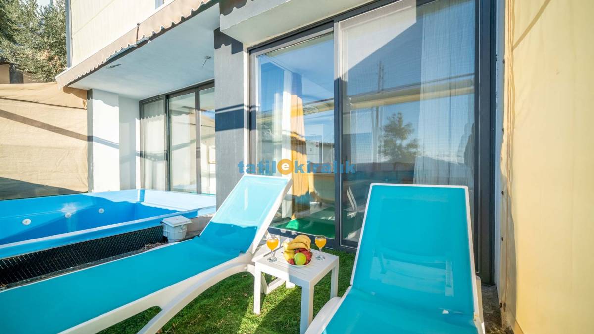 Havuz Terası Detayları : Şezlonglar, barbekü, salıncak bulunmaktadır.