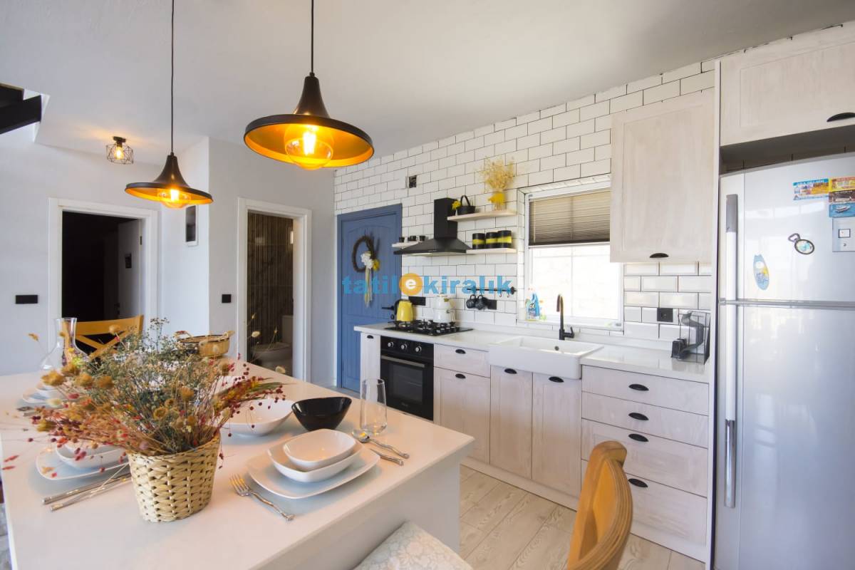 Mutfak Detayları: Buzdolabı, bulaşık makinesi, fırın, çamaşır makinesi, yemek takımı, tava-tencere, çatal-bıçak seti bulunmaktadır.