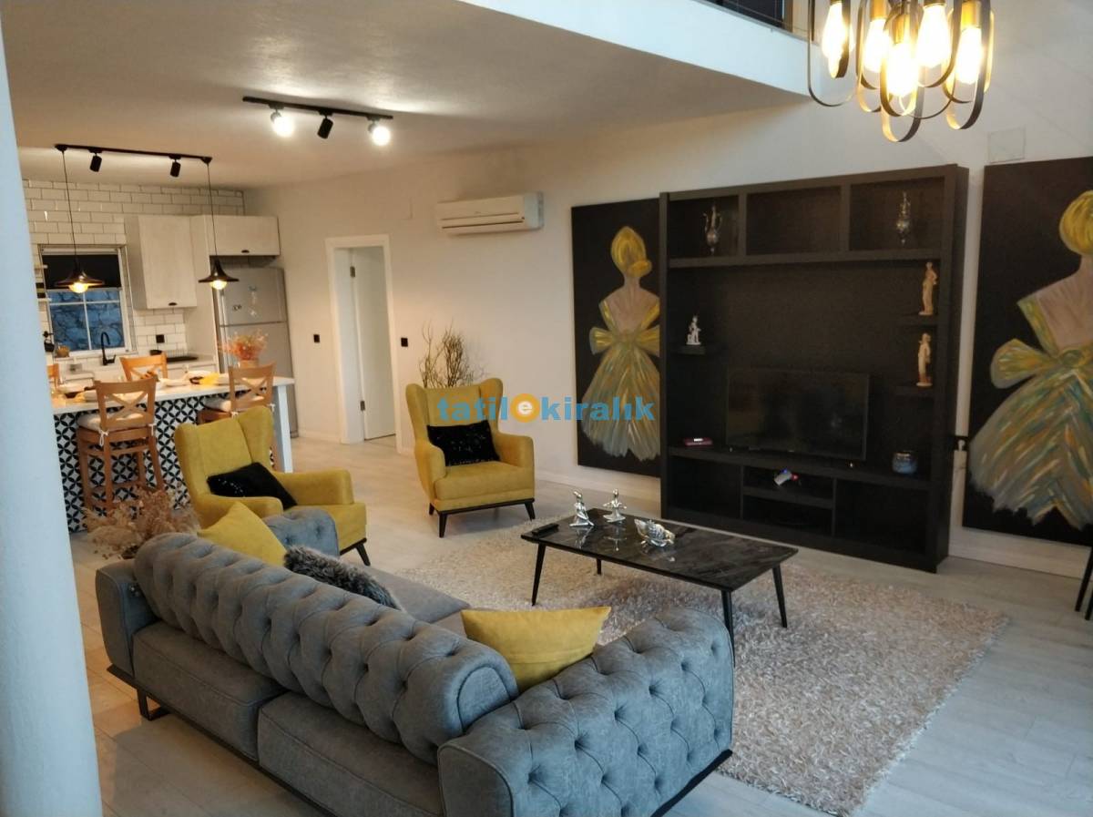 Salon Detayları: LCD TV,modern oturma grubu,yemek masası ve sandalyeler,kablosuz modem bulunmaktadır.
