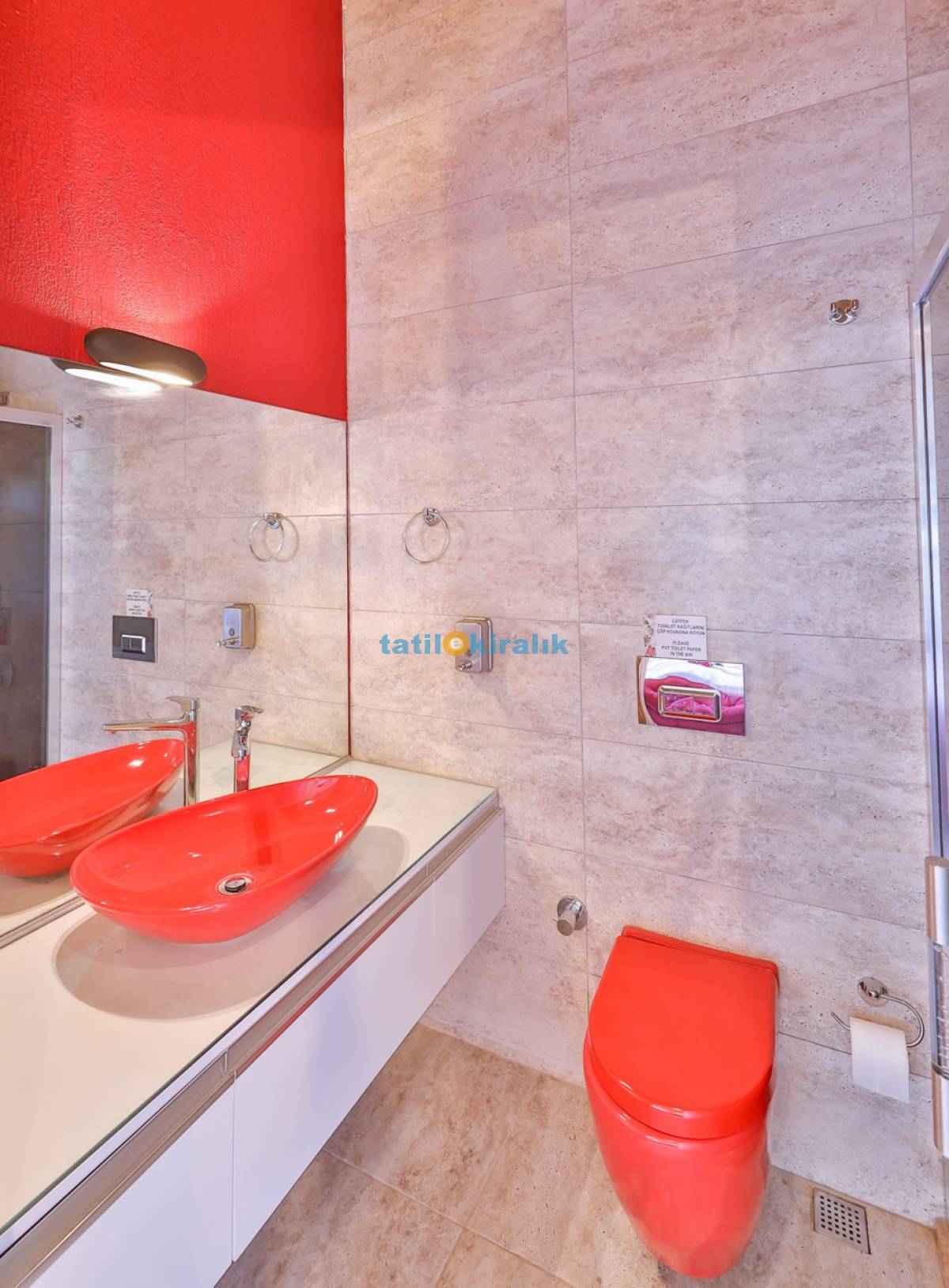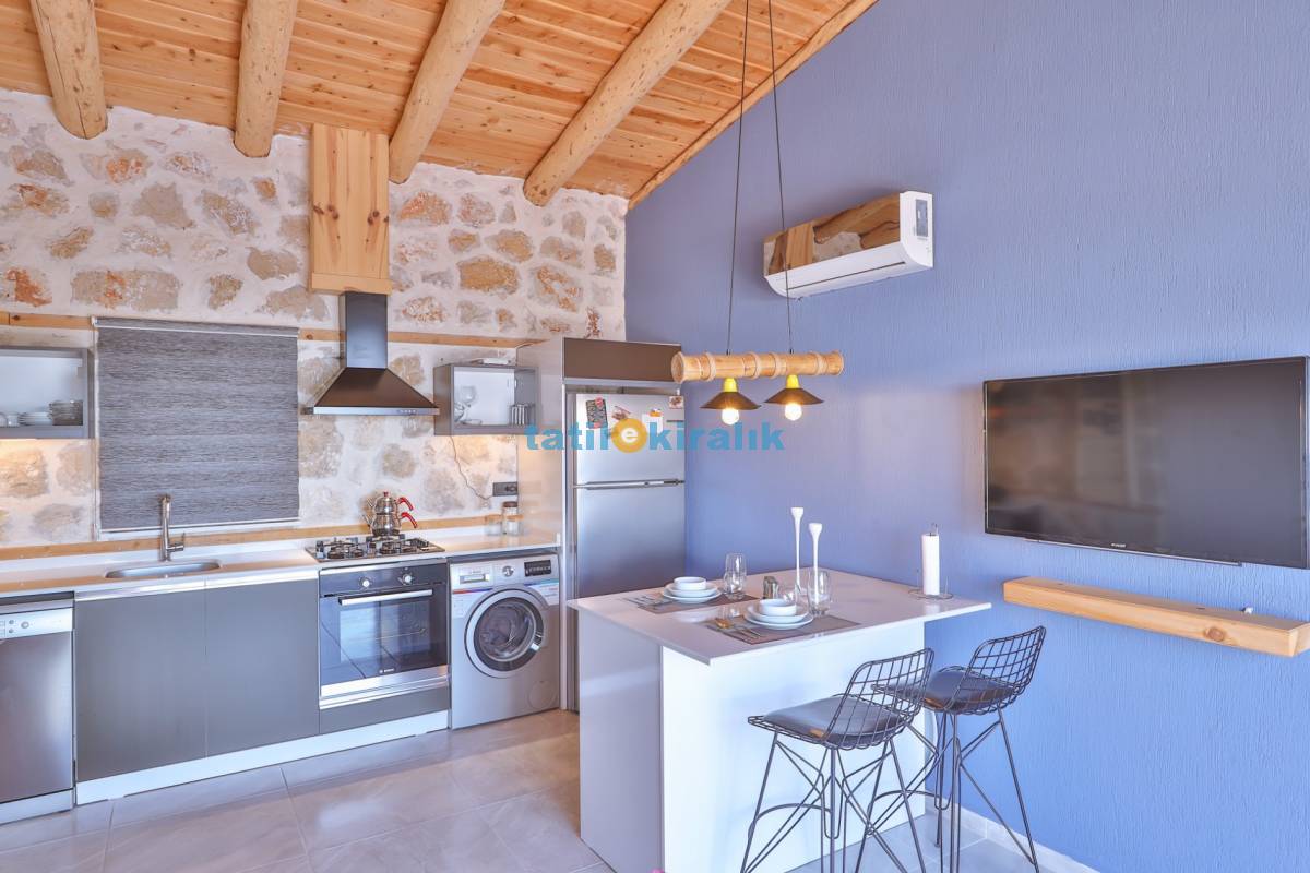 Mutfak Detayları: Buzdolabı, bulaşık makinesi, fırın, mikrodalga, tost makinesi çamaşır makinesi, yemek takımı, tava-tencere, çatal-bıçak seti bulunmaktadır.