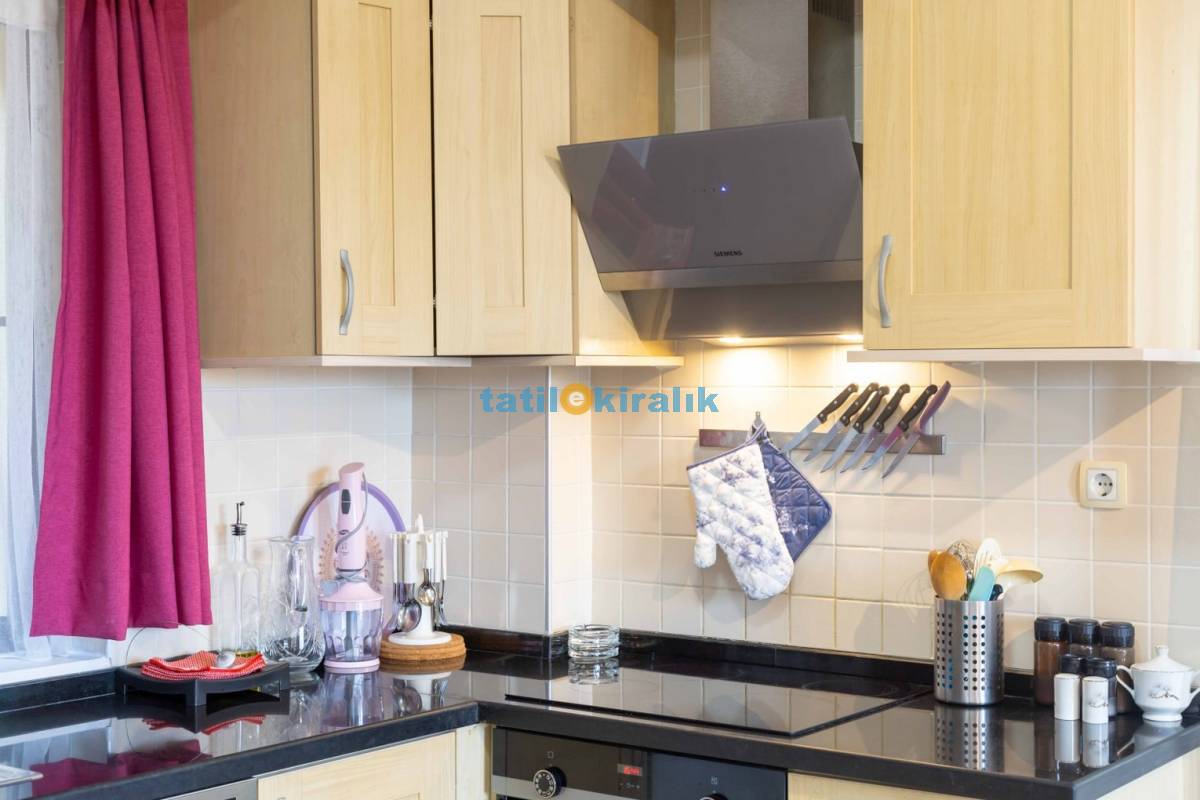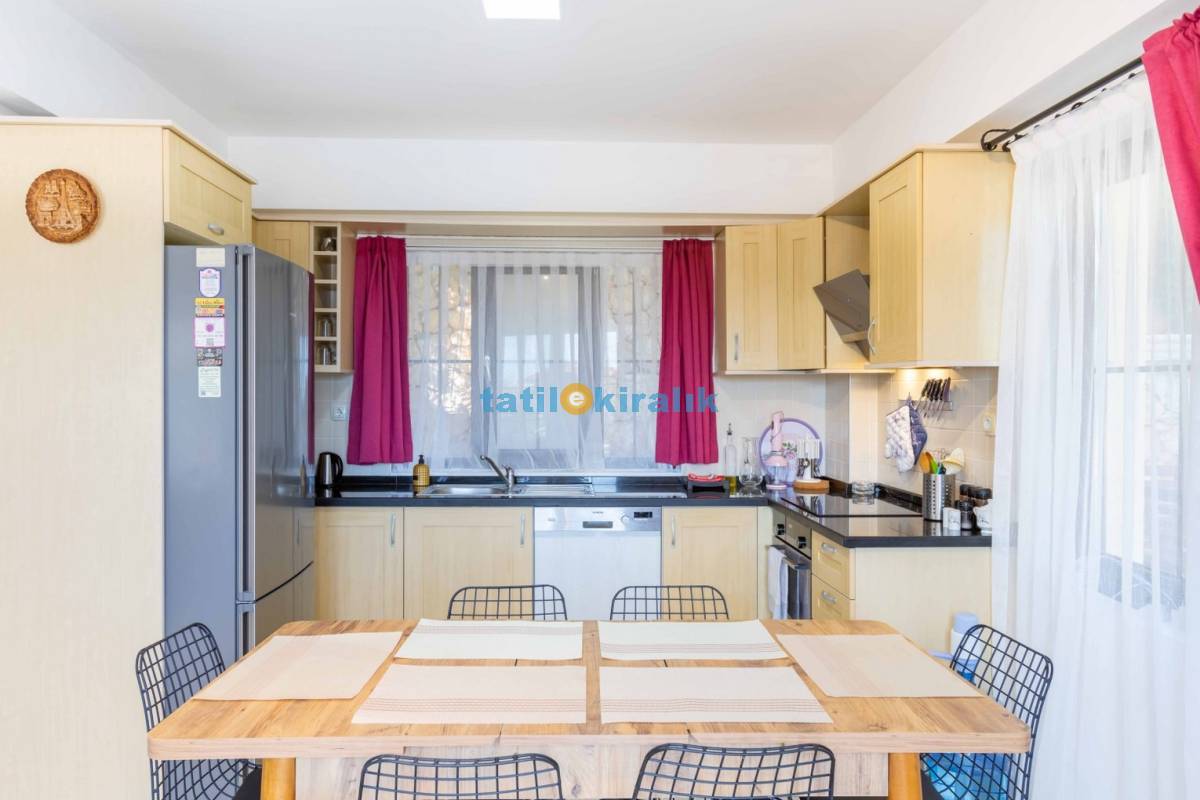 Mutfak Detayları: Buzdolabı, bulaşık makinesi, fırın, çamaşır makinesi, yemek takımı, tava-tencere, çatal-bıçak seti bulunmaktadır.