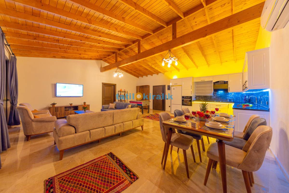 Salon Detayları : LCD TV, modern oturma grubu, mama sandalyesi, yemek masası ve sandalyeler, kablosuz modem bulunmaktadır.