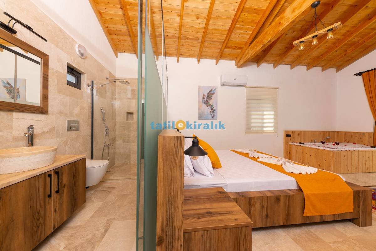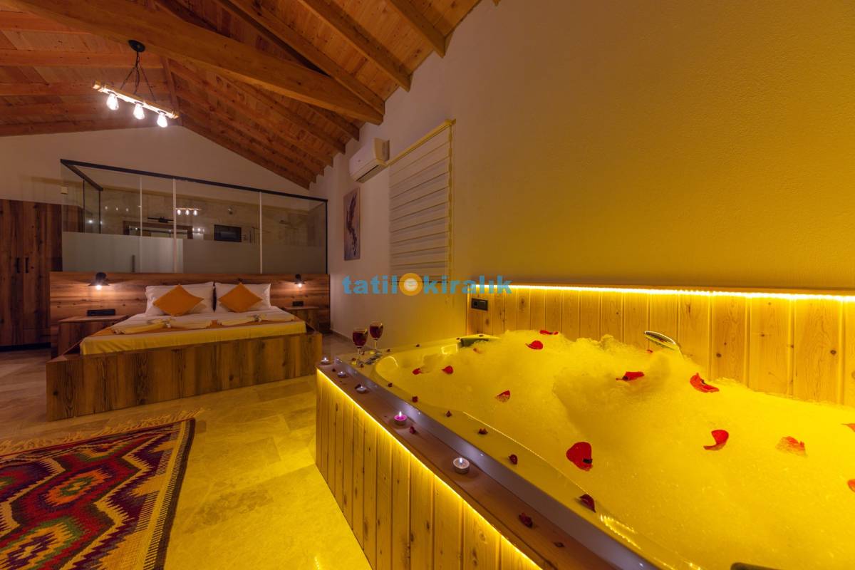 Detayları : Çift kişilik yatak, jakuzi, klima, park yatak, komidin, elbise dolabı, makyaj masası, banyo ve lavabo bulunmaktadır.