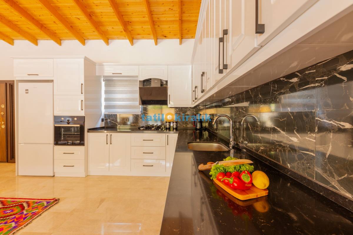 Mutfak Detayları : Buzdolabı, bulaşık makinesi, fırın, çamaşır makinesi, yemek takımı, tava-tencere, çatal-bıçak seti bulunmaktadır.