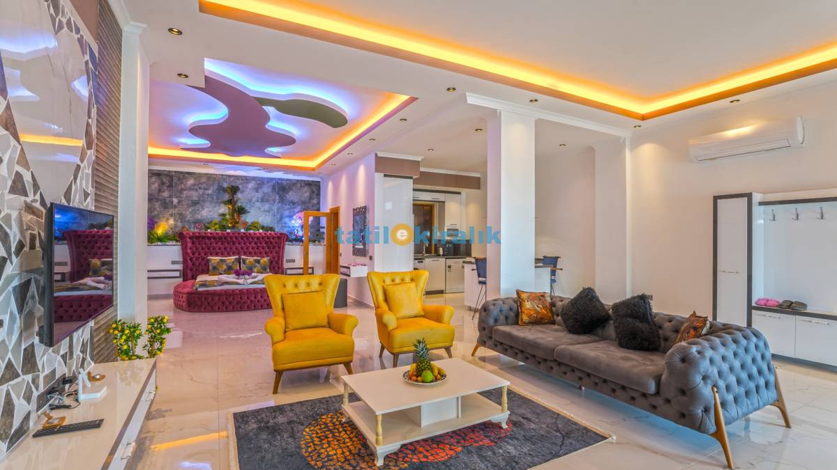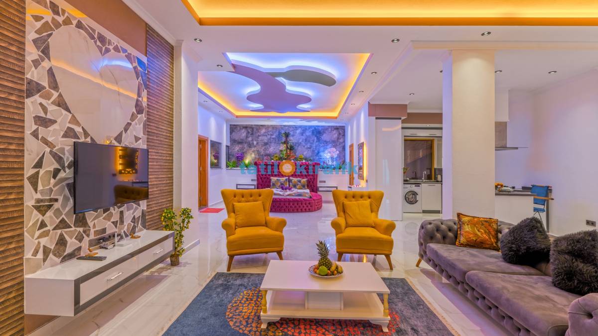 Salon Detayları : LCD TV, klima , modern oturma , grubu , yemek masası ve sandalyeler , kablosuz modem Bulunmaktadır.