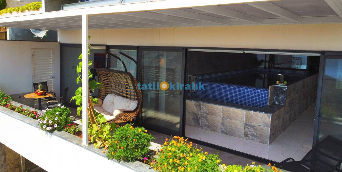 Havuz Terası Detayları : Şezlong , güneşlenme şemsiyesi , Jakuzi , salıncak , koşu bandı , barbekü , yemek masası ve sandalyeleri bulunmaktadır.