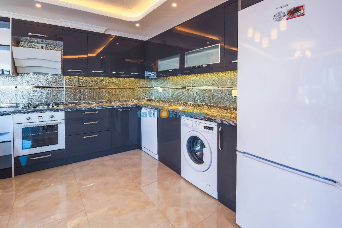 Mutfak Detayları: Geniş, Ferah ve Modern Dizayn Edilmiş Amerikan Mutfak, Buzdolabı, Bulaşık Makinesi, Çamaşır Makinesi, Fırın, 4’lü Ocak (ankastre), Elektrikli Su Isıtıcı, Tava & Tencere vb. Mutfak Ekipmanları, 6 Kişilik Yemek Takımı