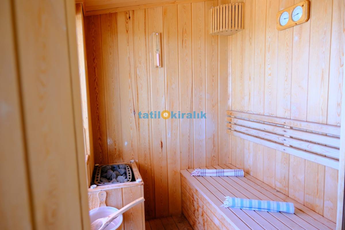 NOT:Bu villamızın dış havuzun da havuz ısıtma sistemi bulunmaktadır. Ekstra ücret karşılığında isteğe bağlı olarak aktif edilmektedir . Haftalık havuz ısıtma ücreti 10.000 TL şeklindedir. Havuz sıcaklığı maksimum 25-26 derecedir.